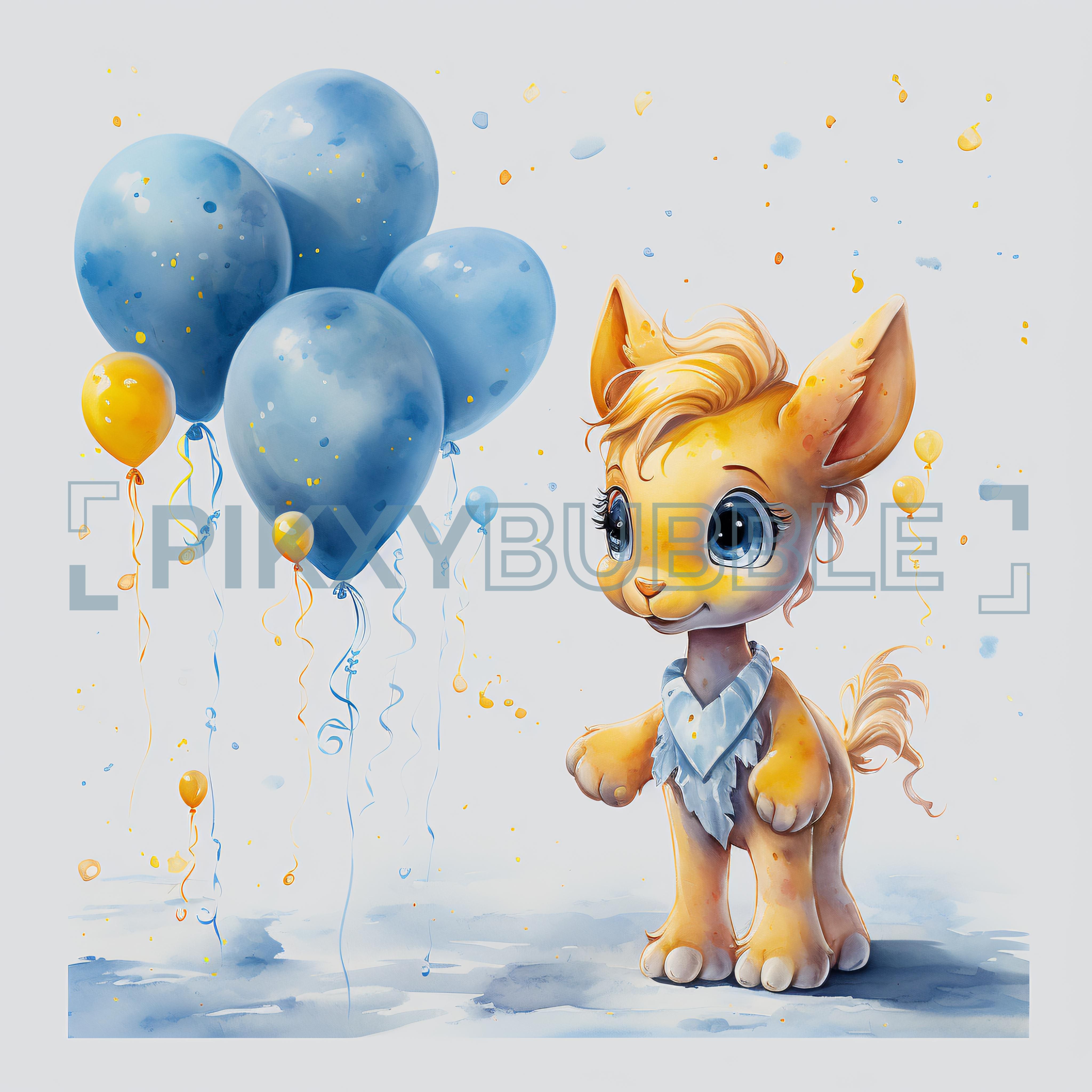 Célébrez chaque moment avec style! Des ballons colorés, un adorable animal et beaucoup de joie au rendez-vous.