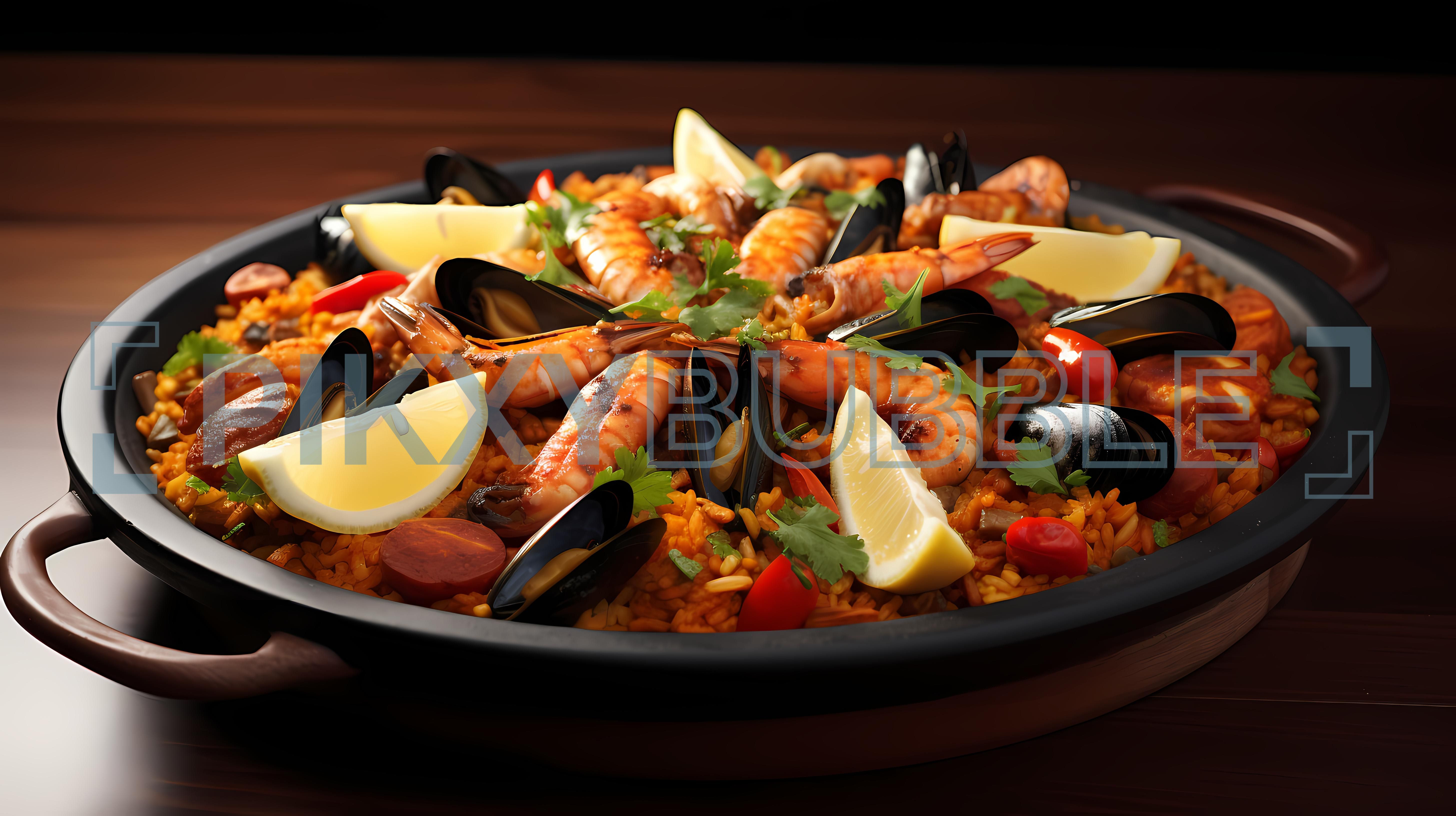 Découvrez la paella, un plat traditionnel espagnol qui allie des saveurs incroyables. Profitez de ses ingrédients frais et colorés :