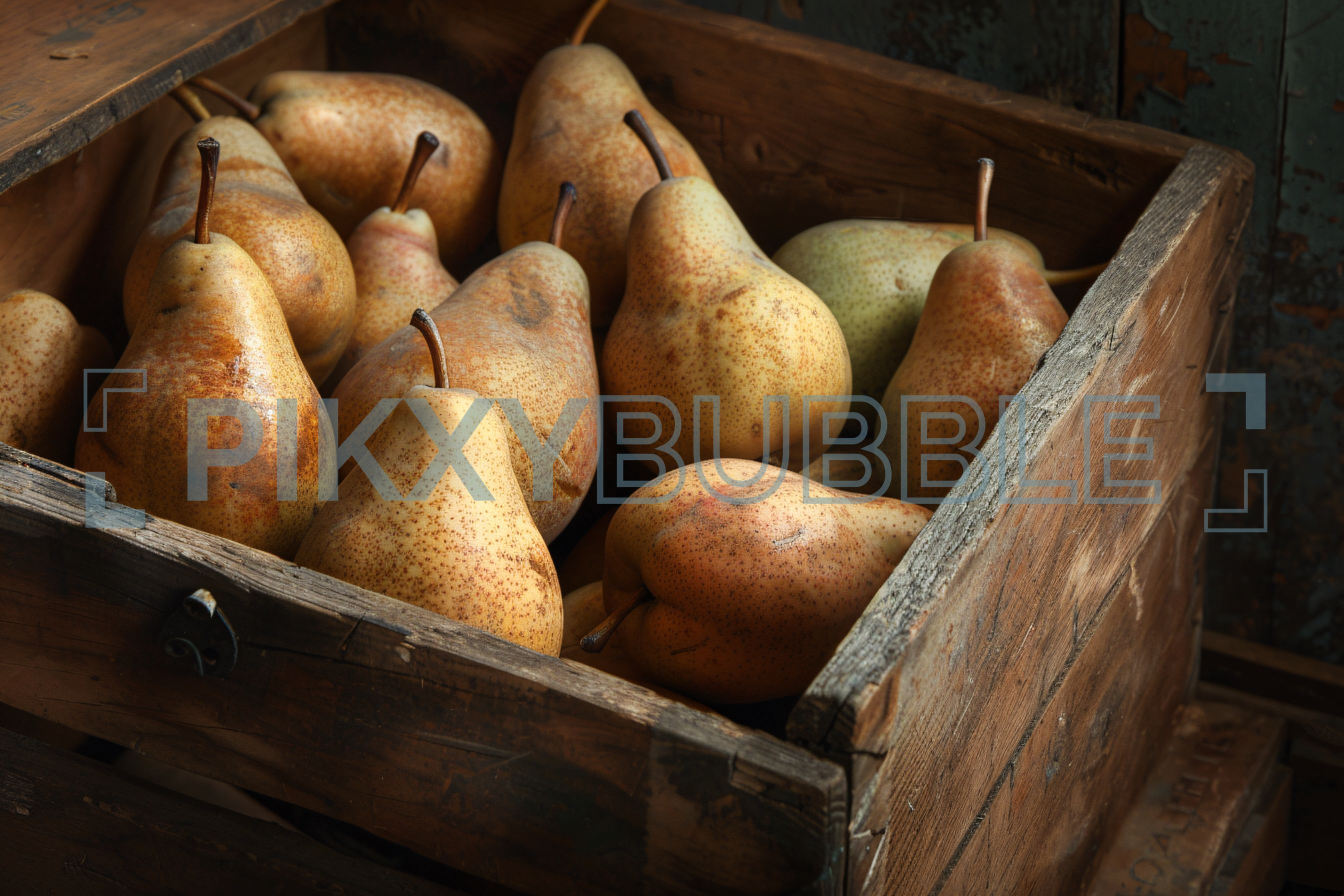 Cette boîte remplie de poires est un véritable trésor de la nature. Les poires, avec leur peau dorée et leur forme caractéristique, sont parfaites pour de nombreuses recettes.