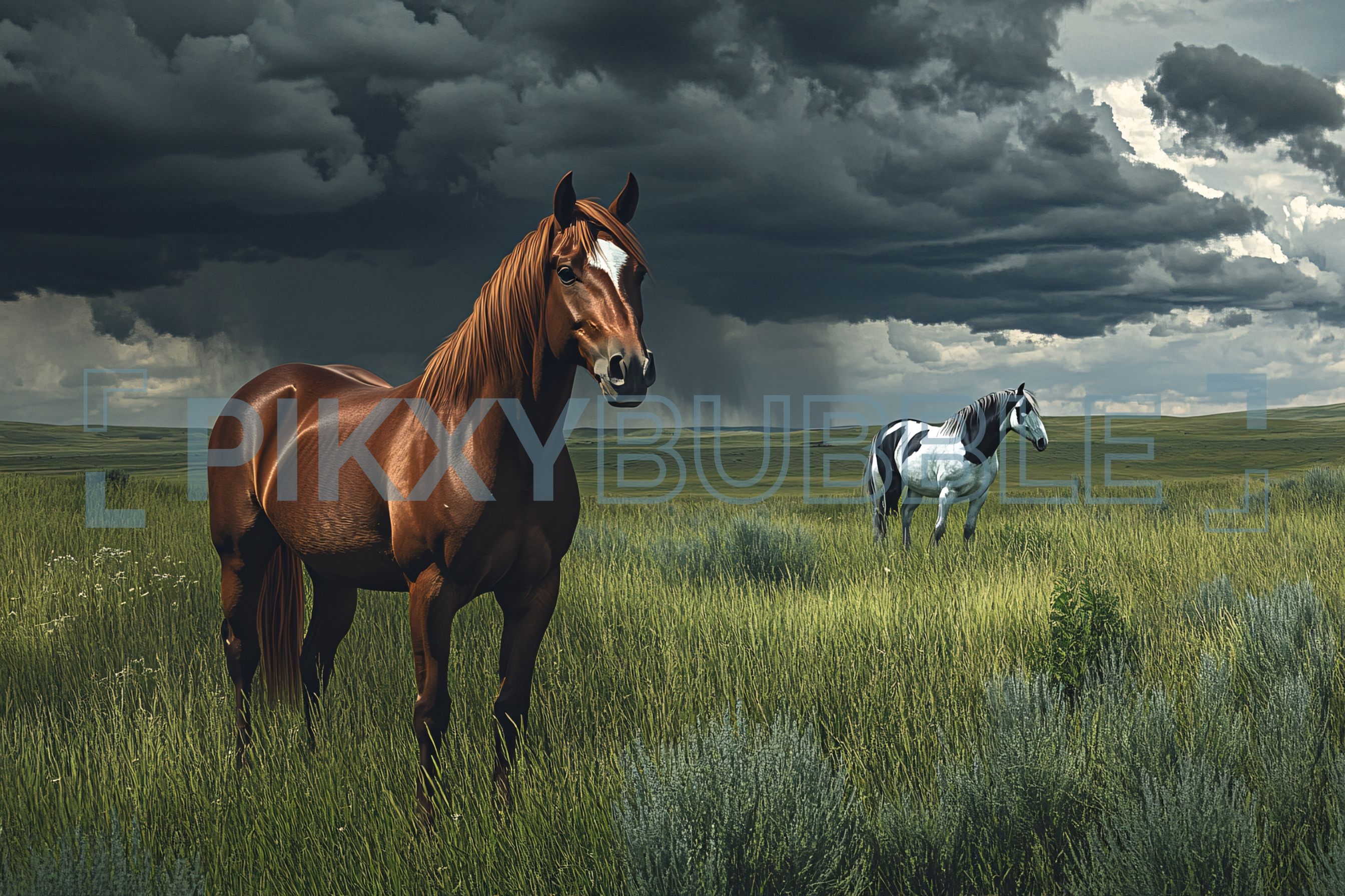 Magnifiques chevaux dans un paysage verdoyant.
