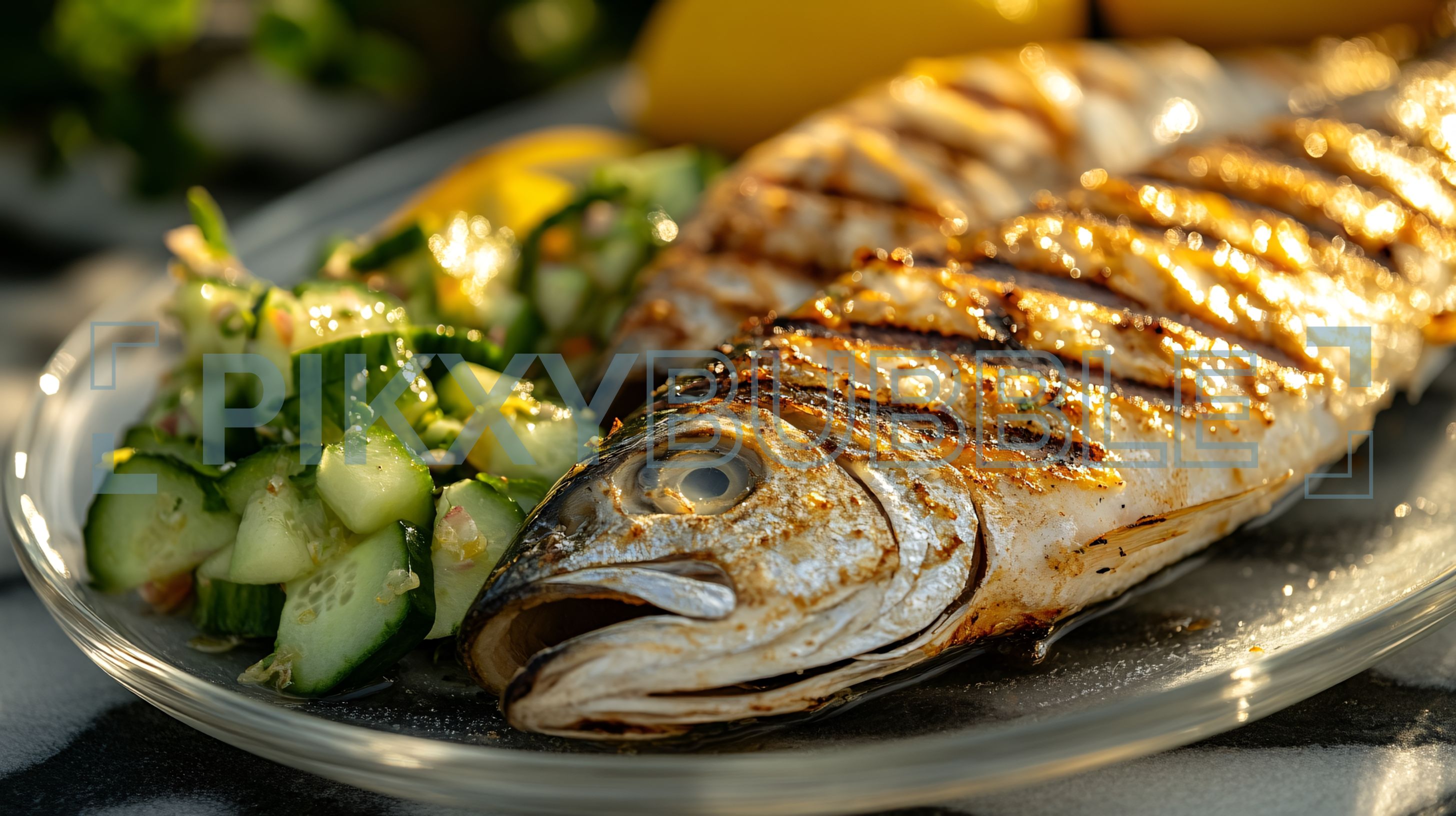 Délicieux poisson grillé, accompagné d'une salade fraîche :