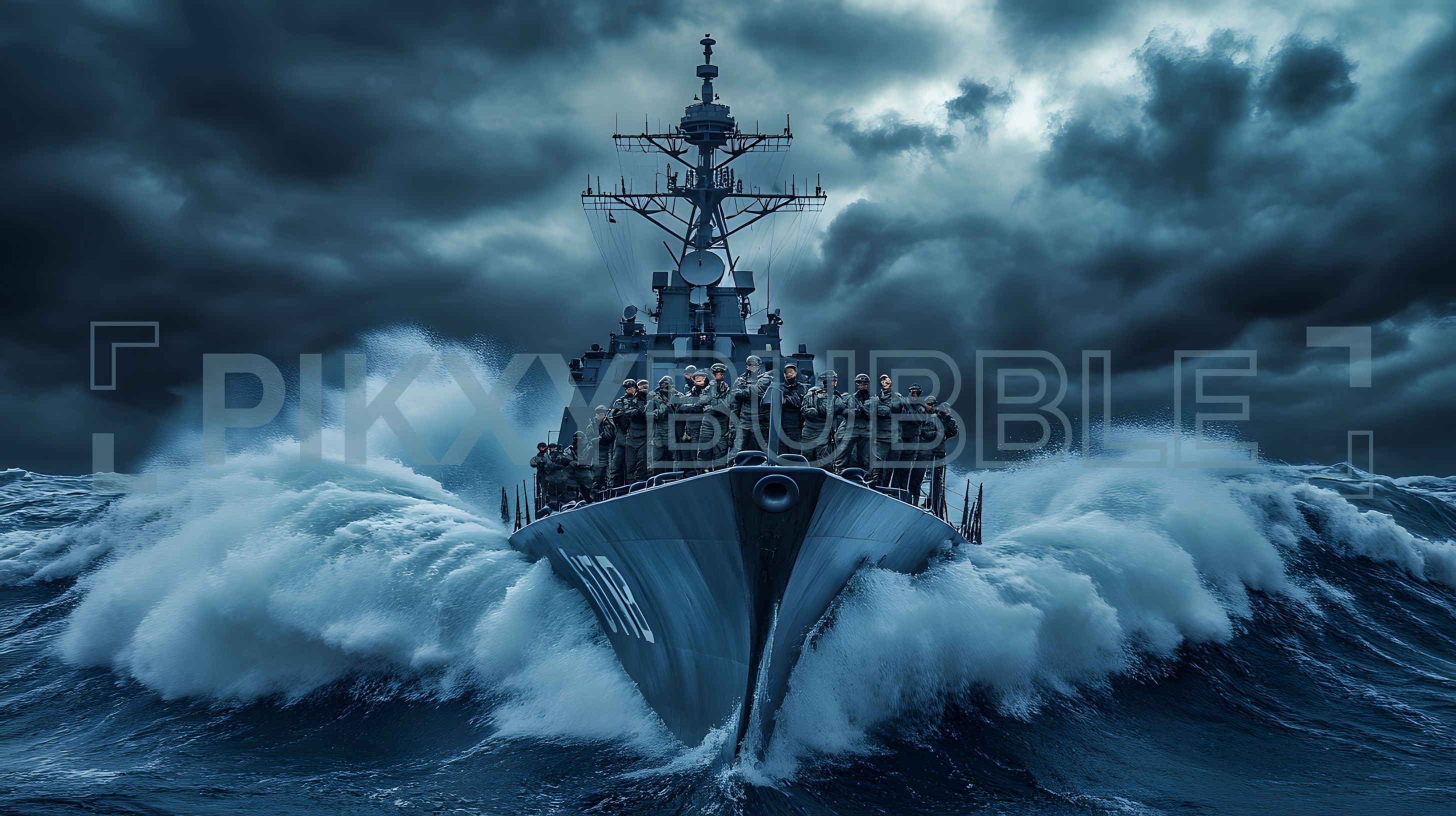 Bateau de guerre en pleine tempête