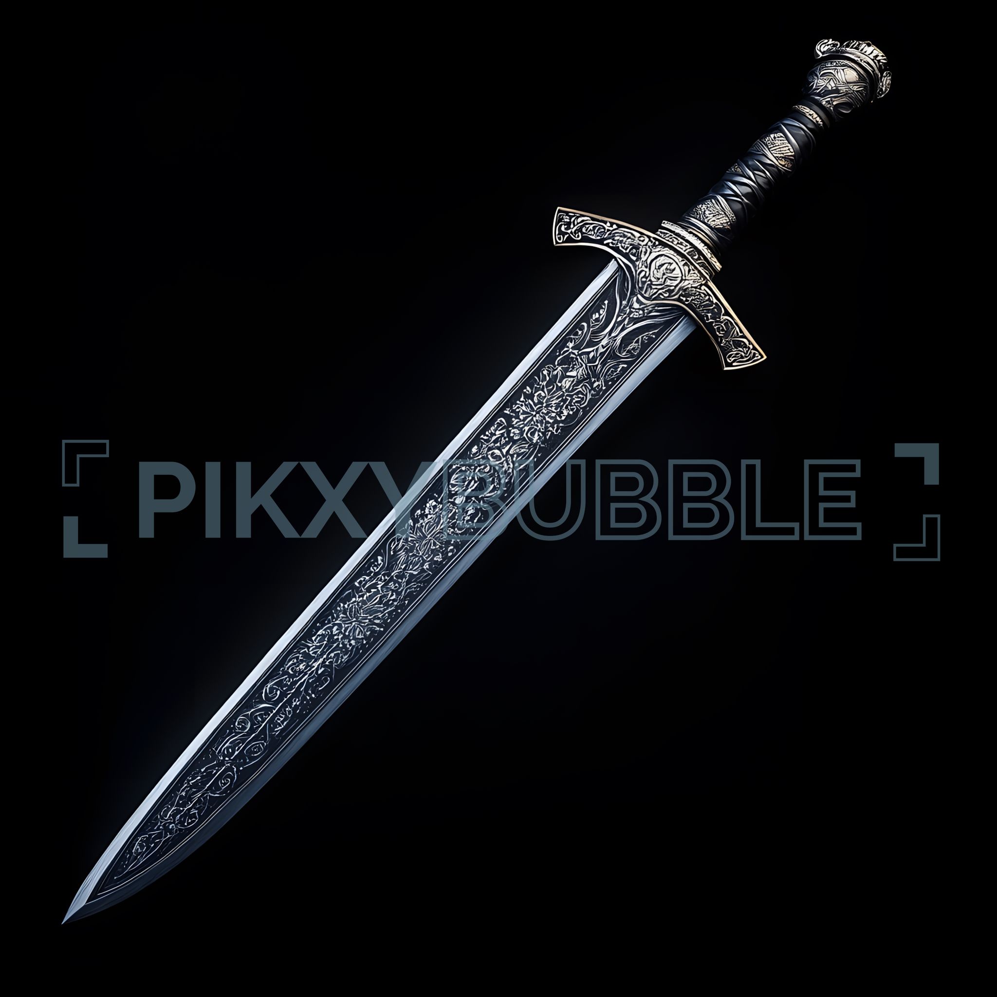 Ceci est une magnifique épée, étincelante et détaillée, avec des motifs complexes. Voici quelques caractéristiques :