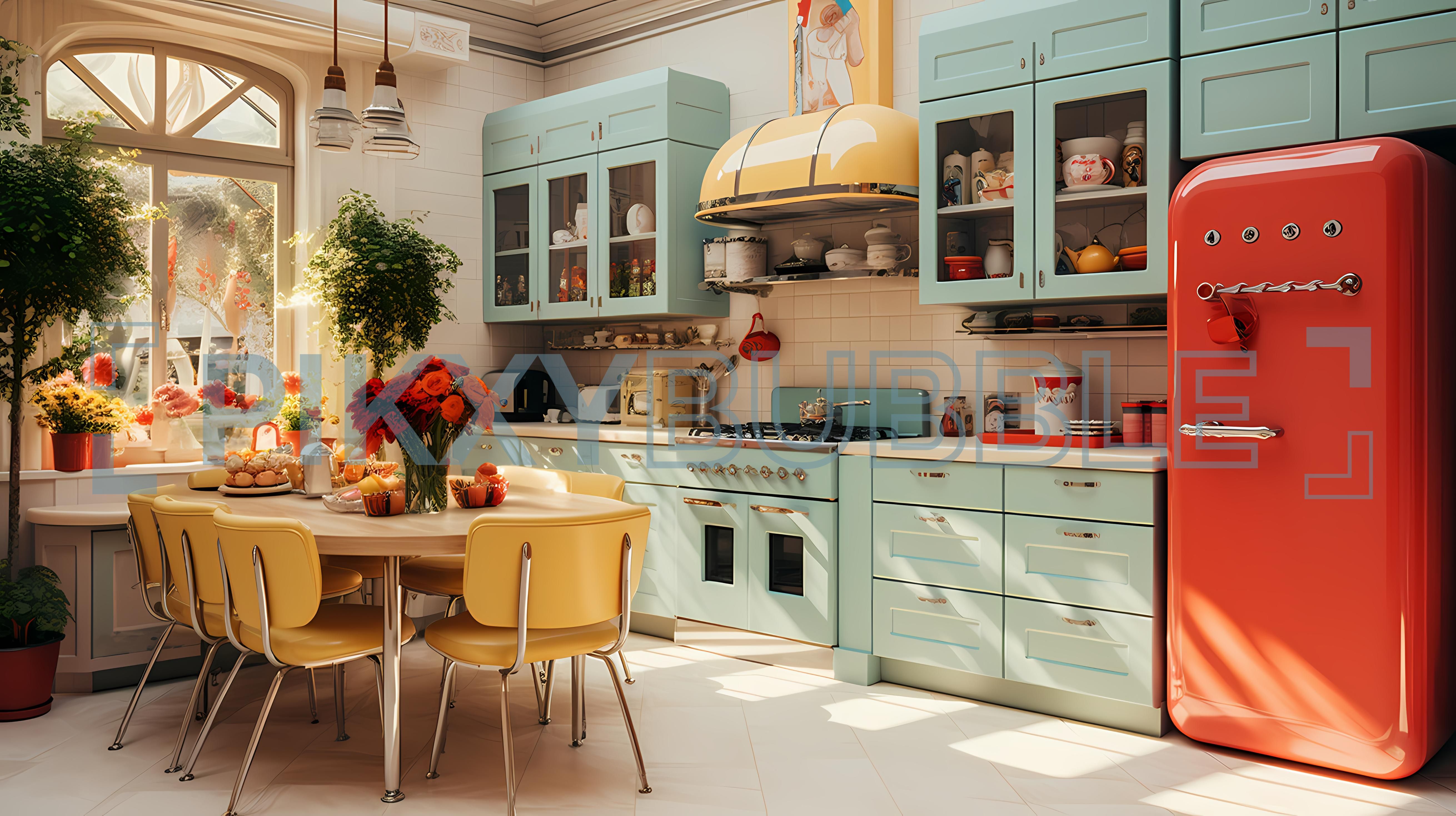 Cuisine moderne et chaleureuse avec une touche rétro.