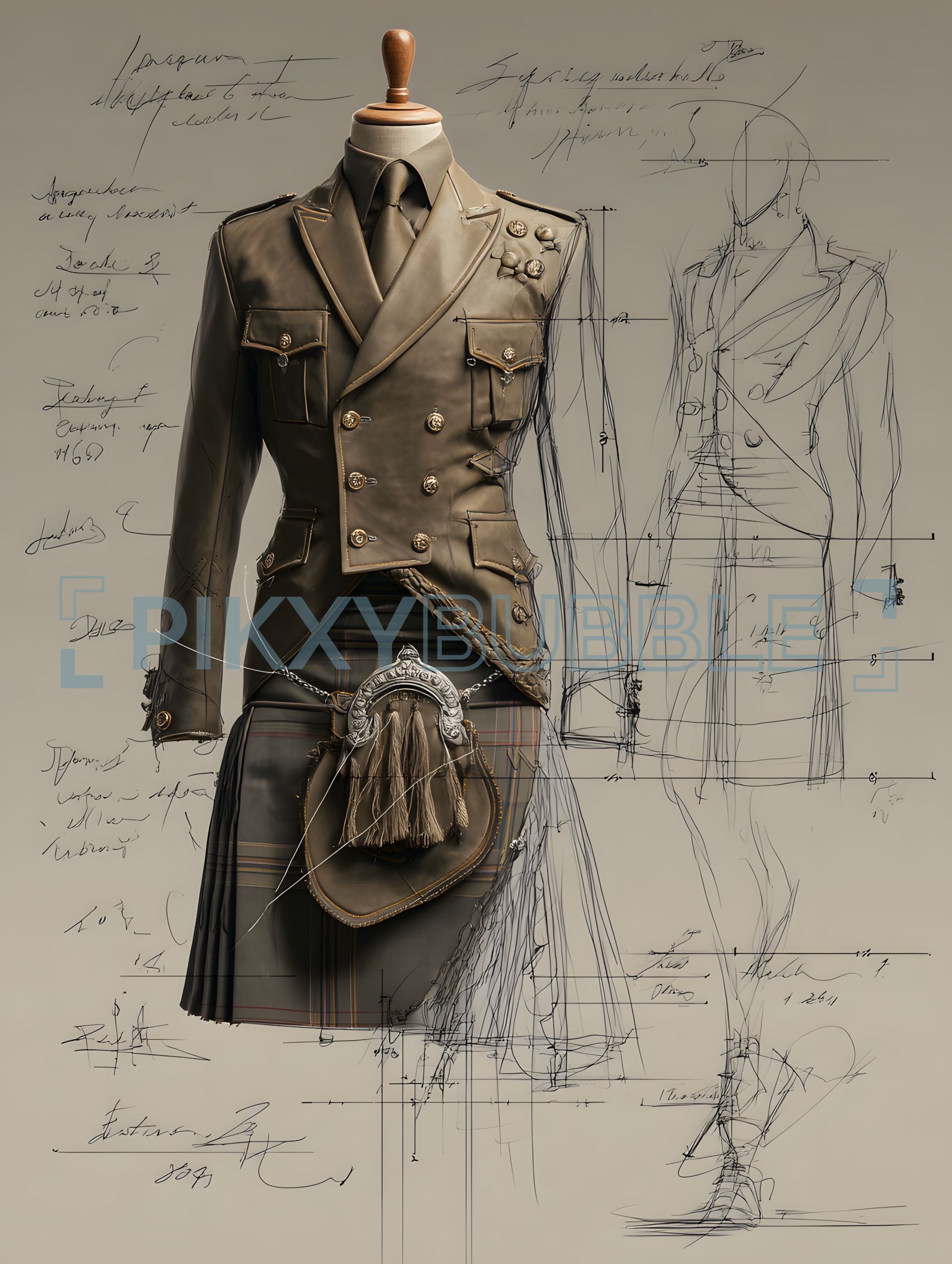 Veste militaire élégante avec une finition sophistiquée. Explorez les détails :