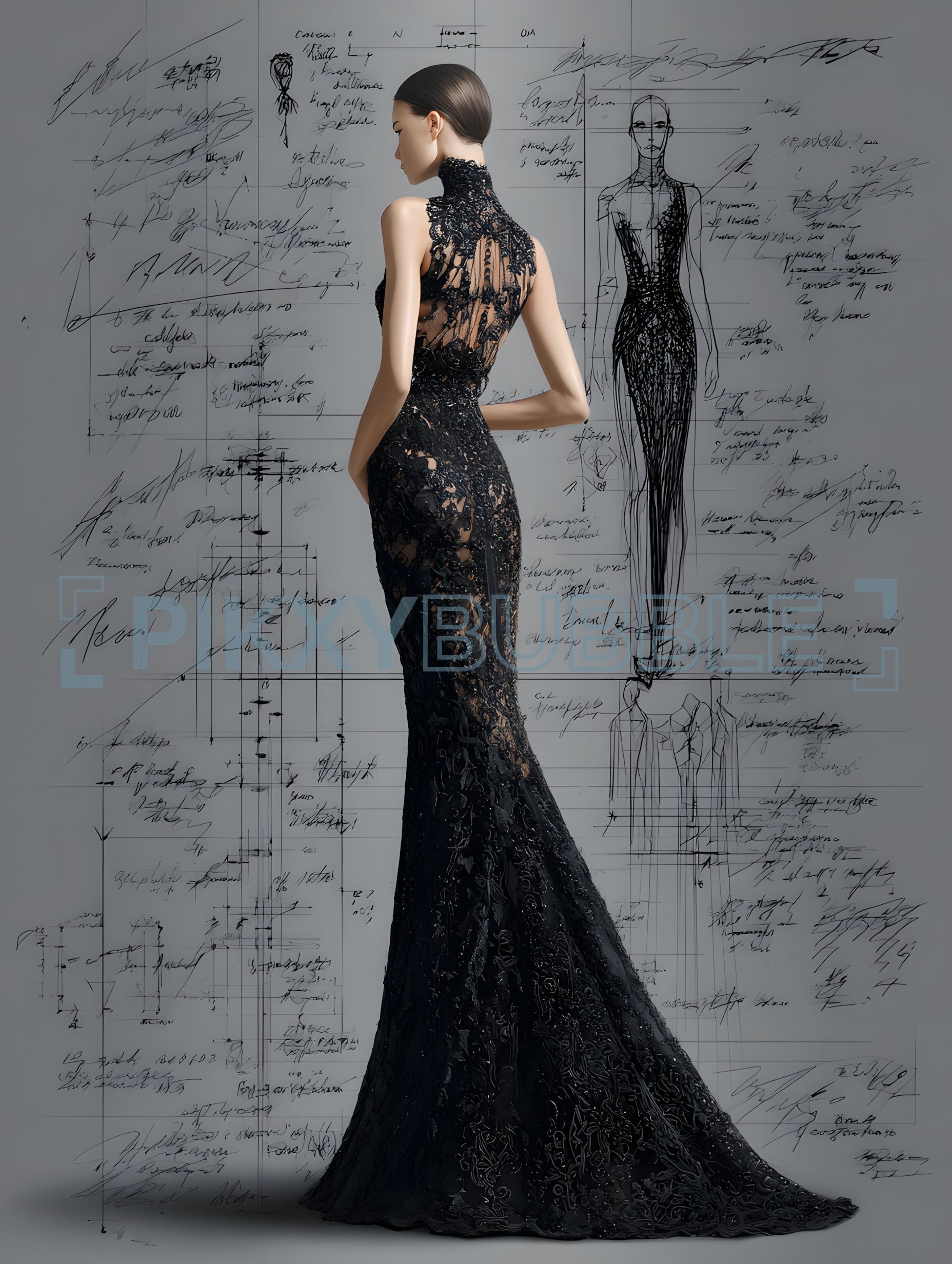 Cette robe en dentelle noire se distingue par :