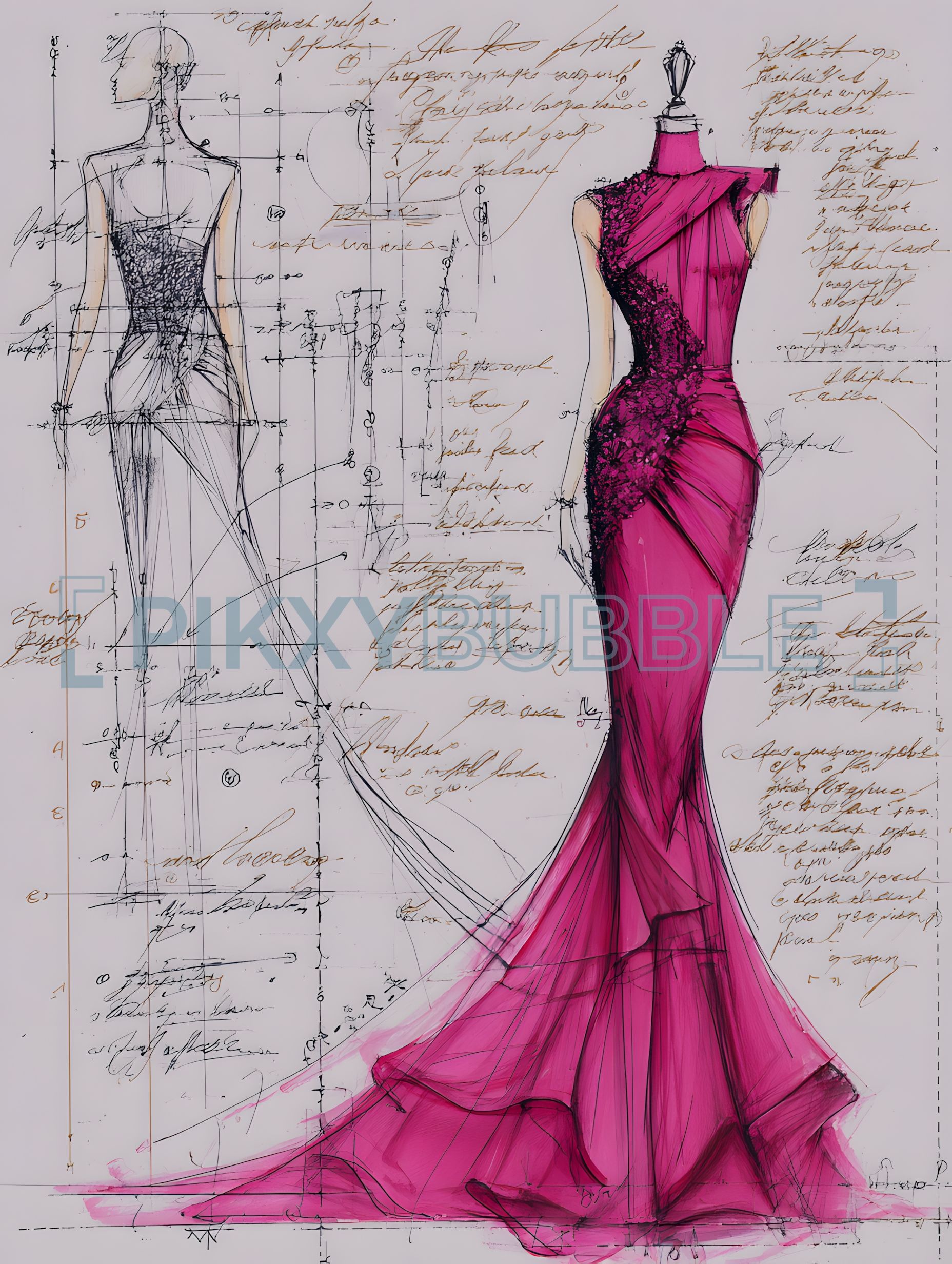 Robe élégante en satin rose avec de délicates broderies.