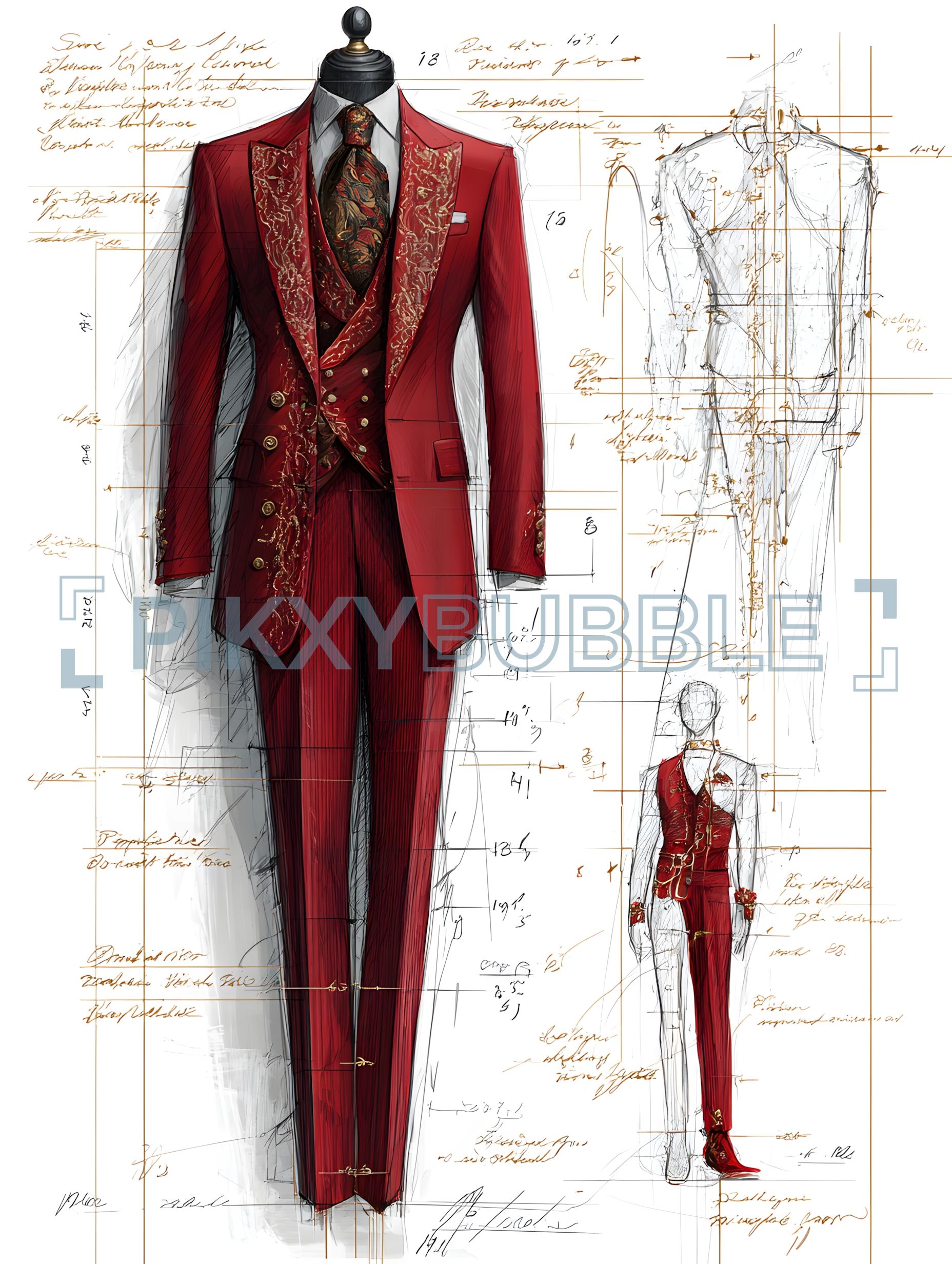 Ce costume rouge élégant est parfait pour les occasions spéciales. Il se distingue par ses détails raffinés comme :