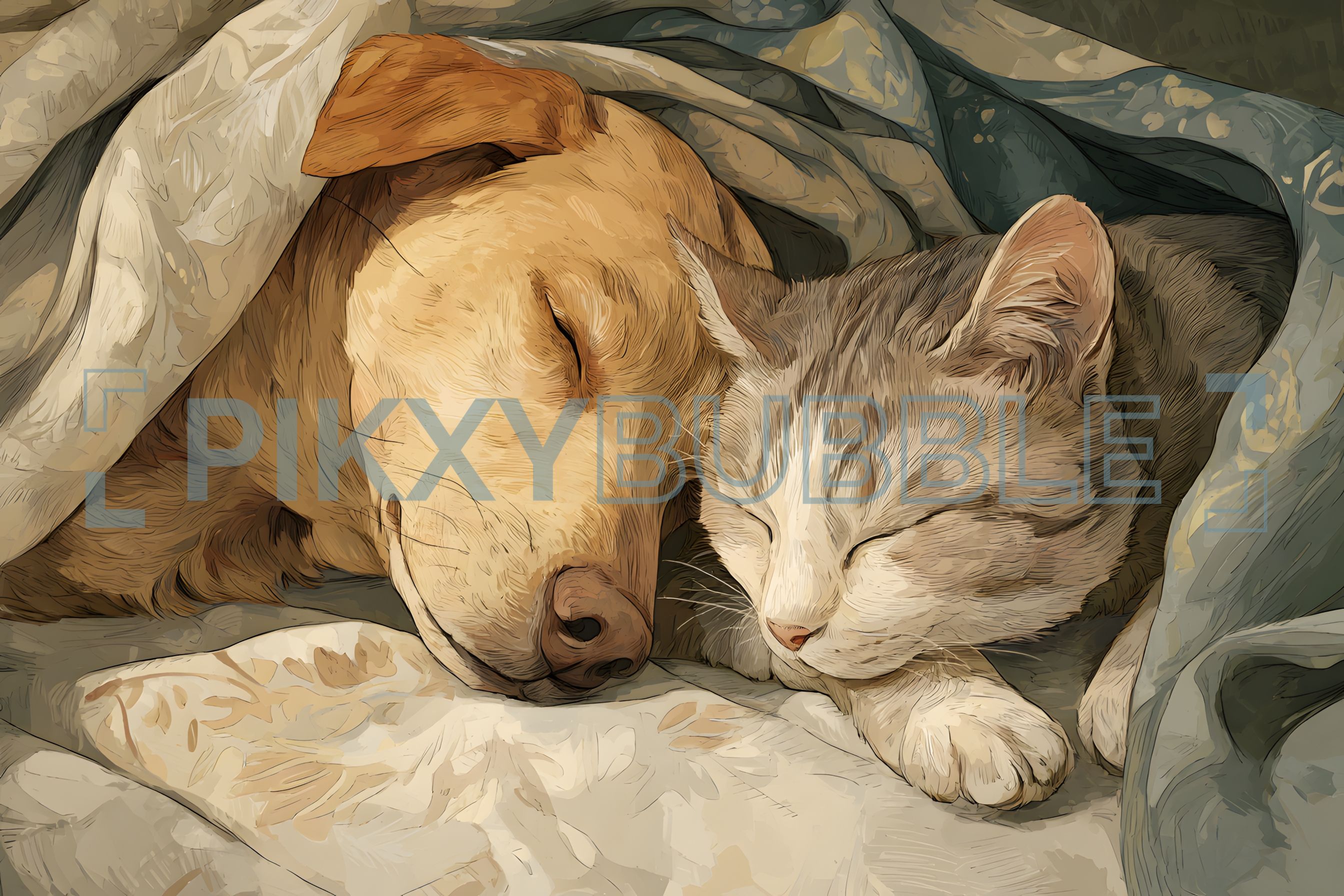 Un duo adorable composé d'un chien et d'un chat qui dorment paisiblement.