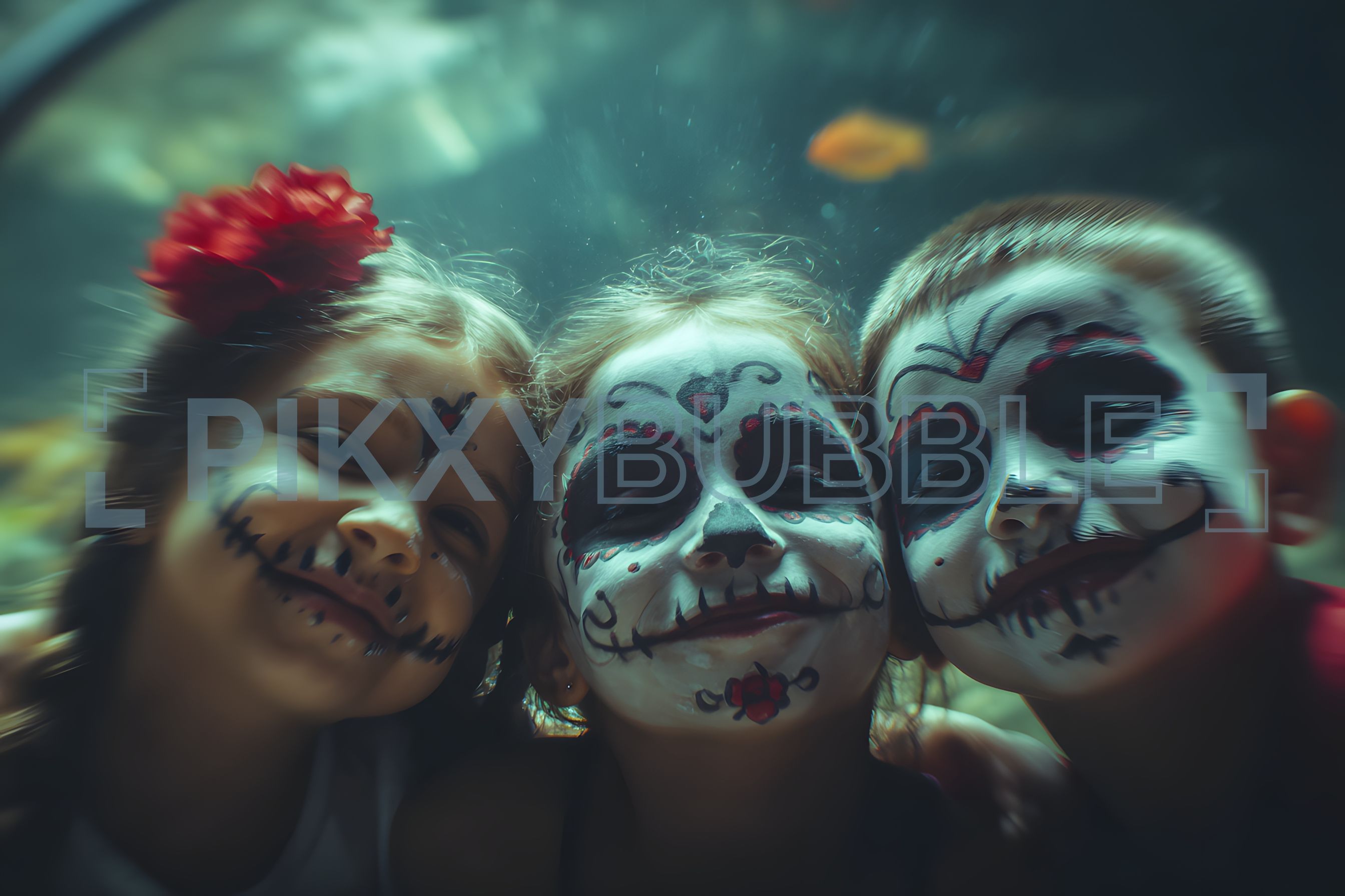 Ils portent des maquillages de calavera et sourient joyeusement.