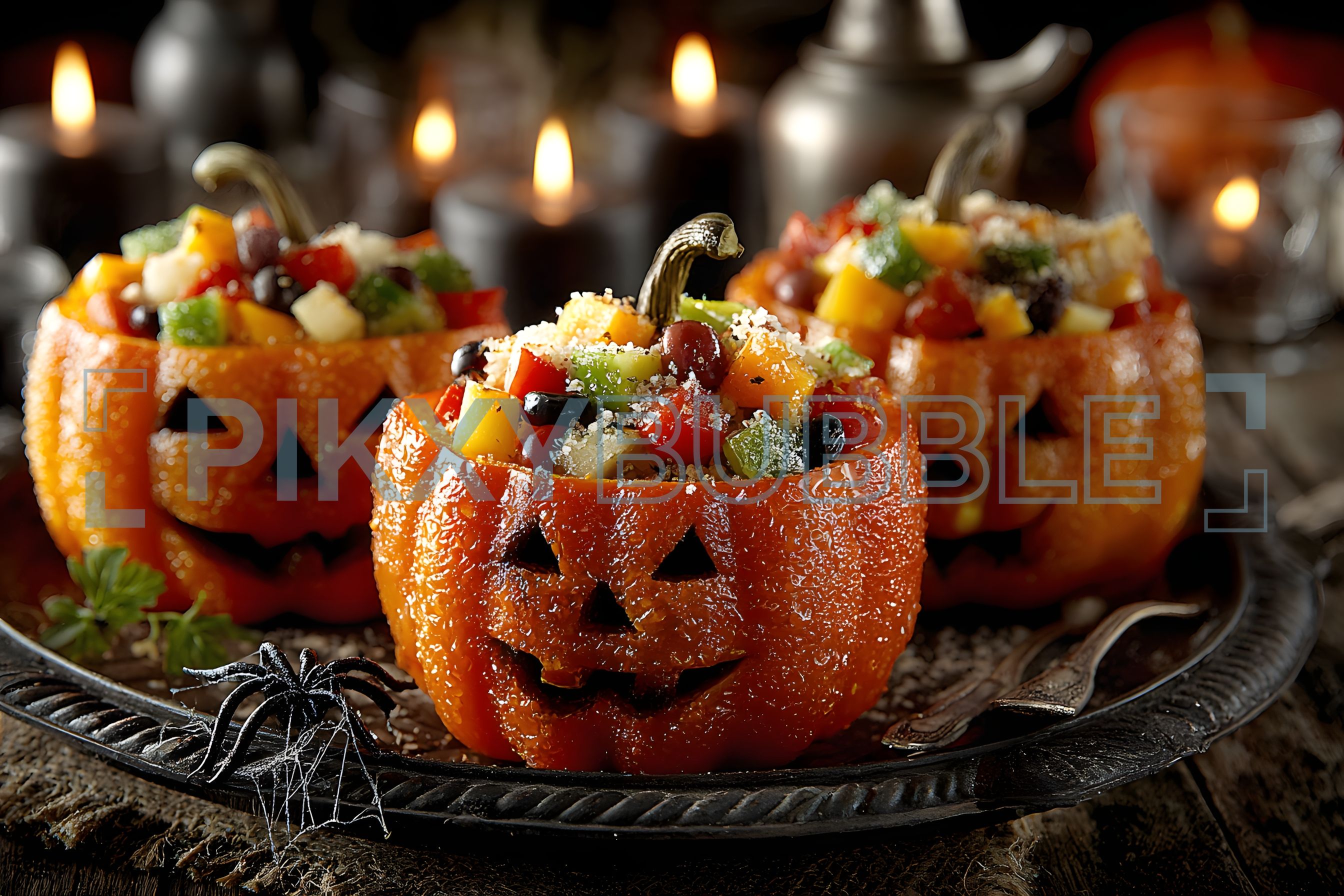 Préparez un plat d'Halloween amusant avec ces poivrons citrouille ! Remplis de légumes colorés, ils sont parfaits pour une soirée festive.