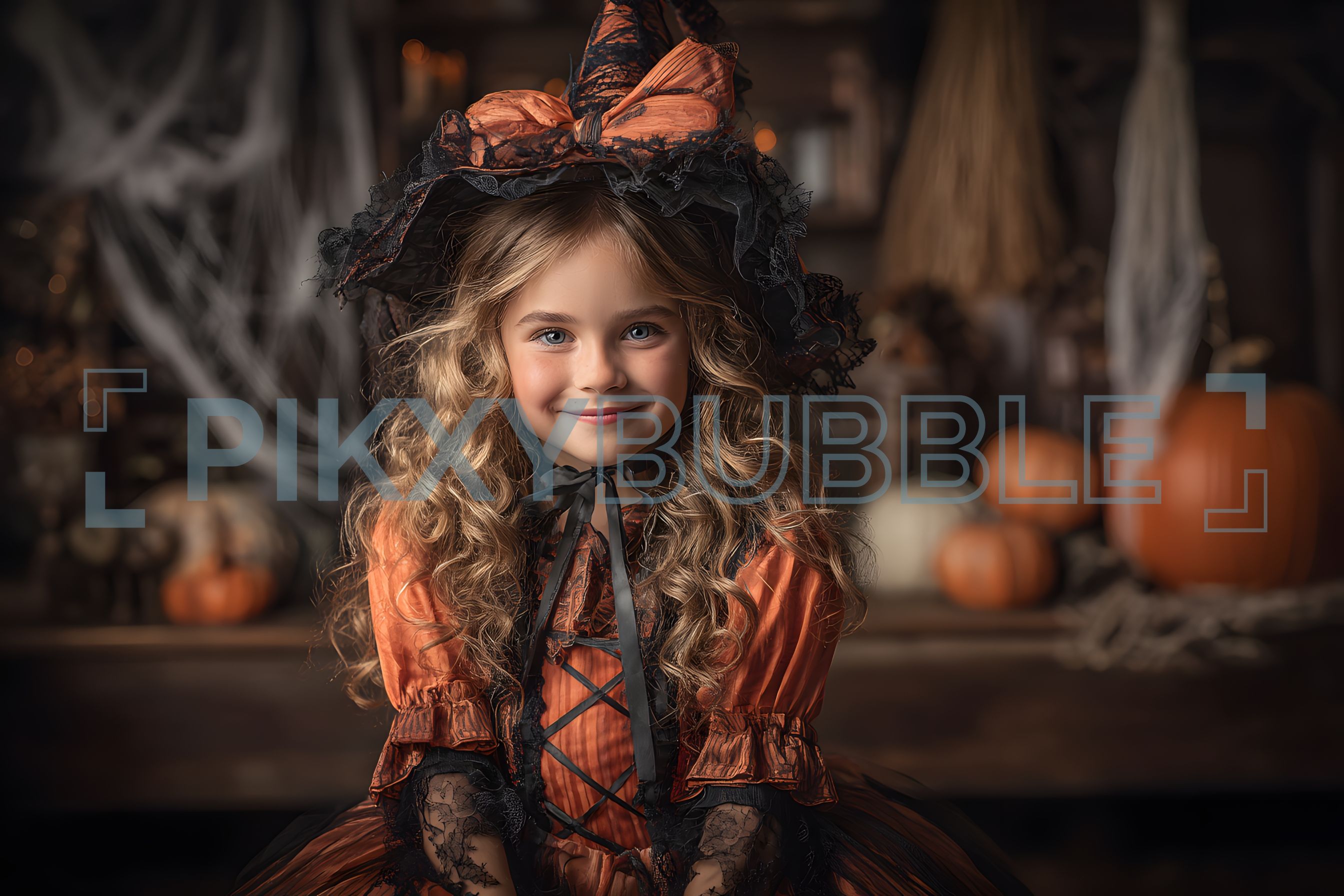 Découvrez la magie d'Halloween avec notre petite sorcière en robe orange. Voici quelques éléments incontournables :