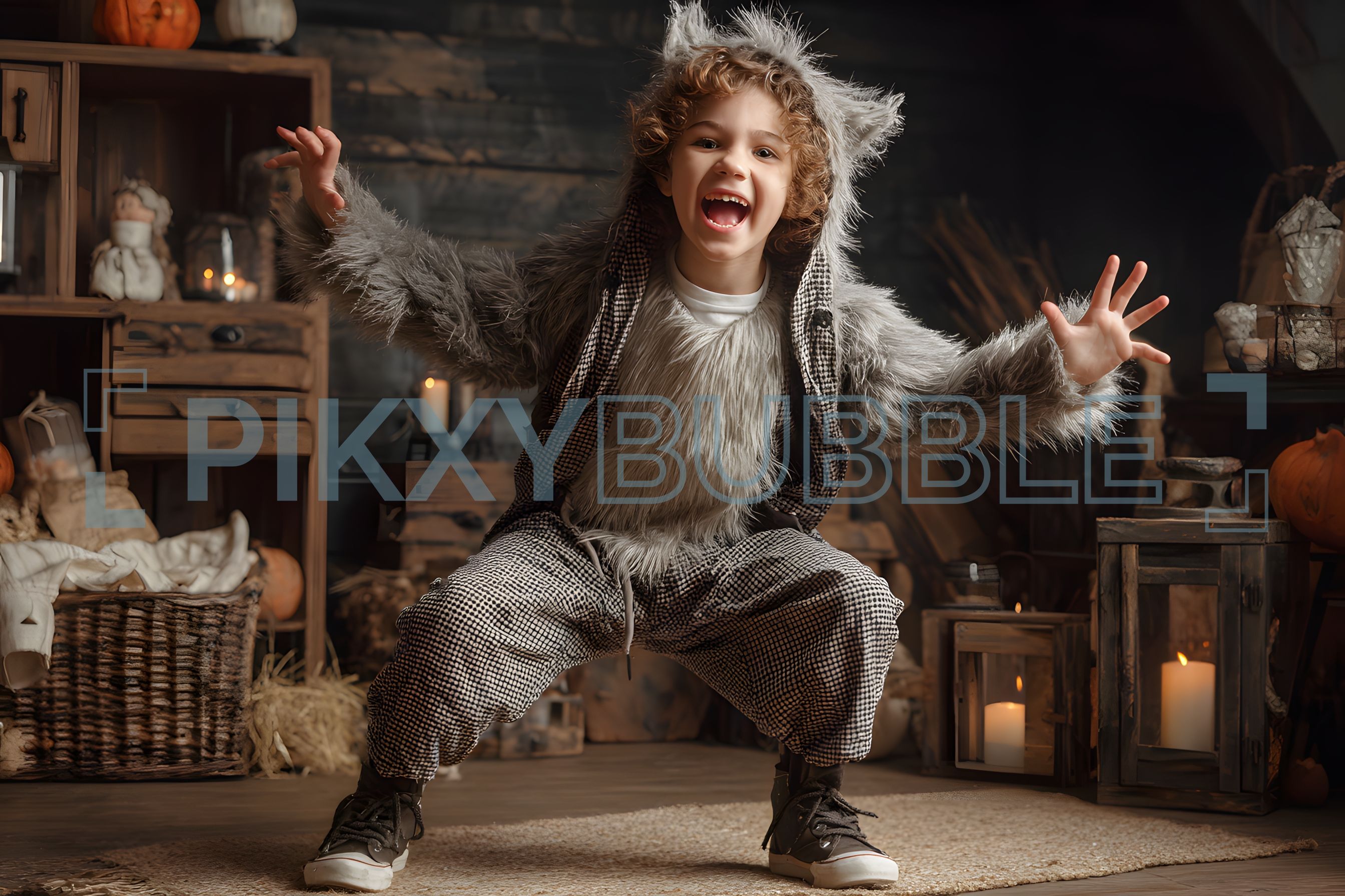 Un enfant heureux s'amuse en se déguisant en loup. C'est un moment mémorable rempli de joie.