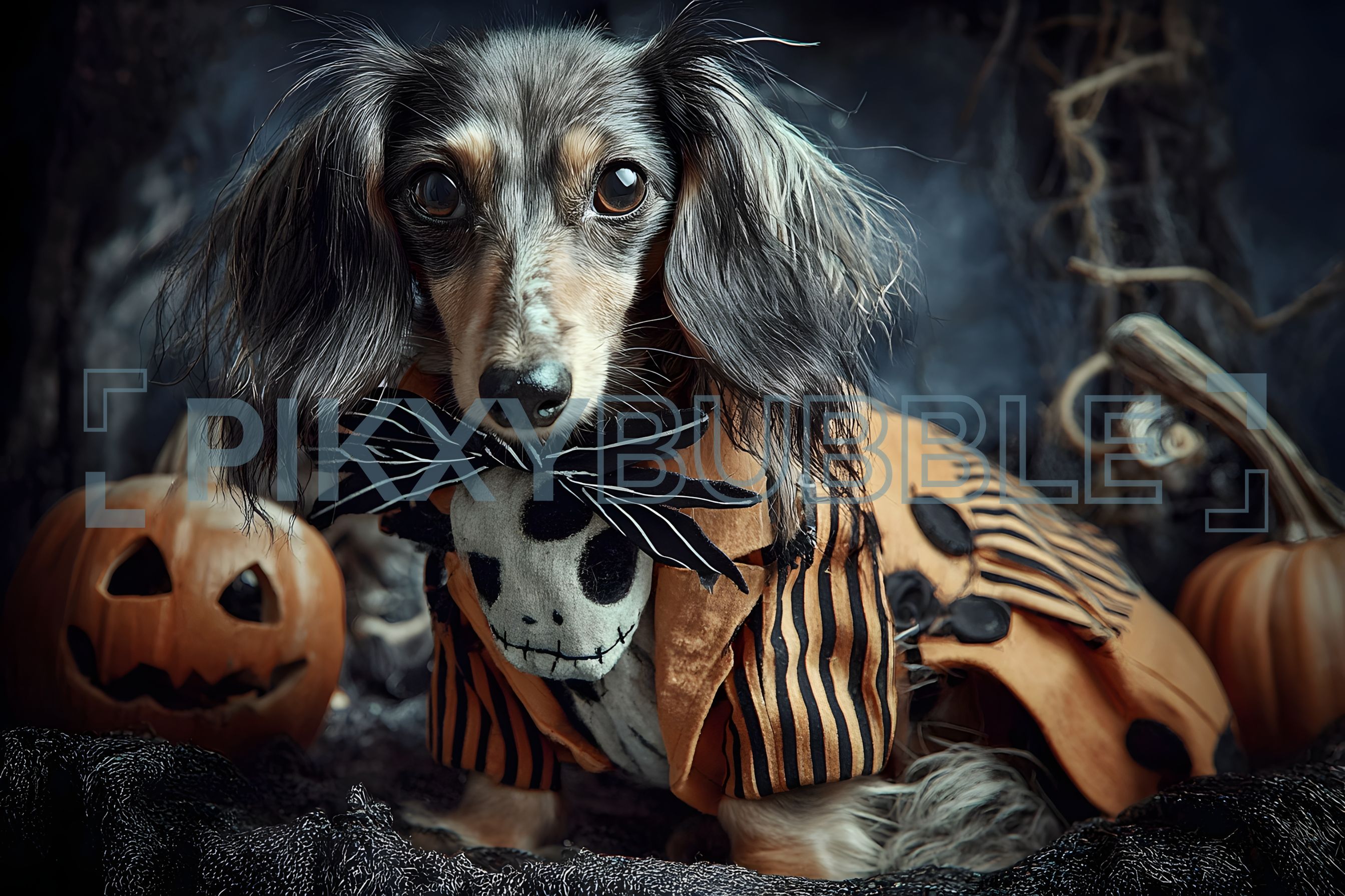 Ce chien mignon est prêt pour Halloween avec son costume adorable. Voici quelques éléments à noter :