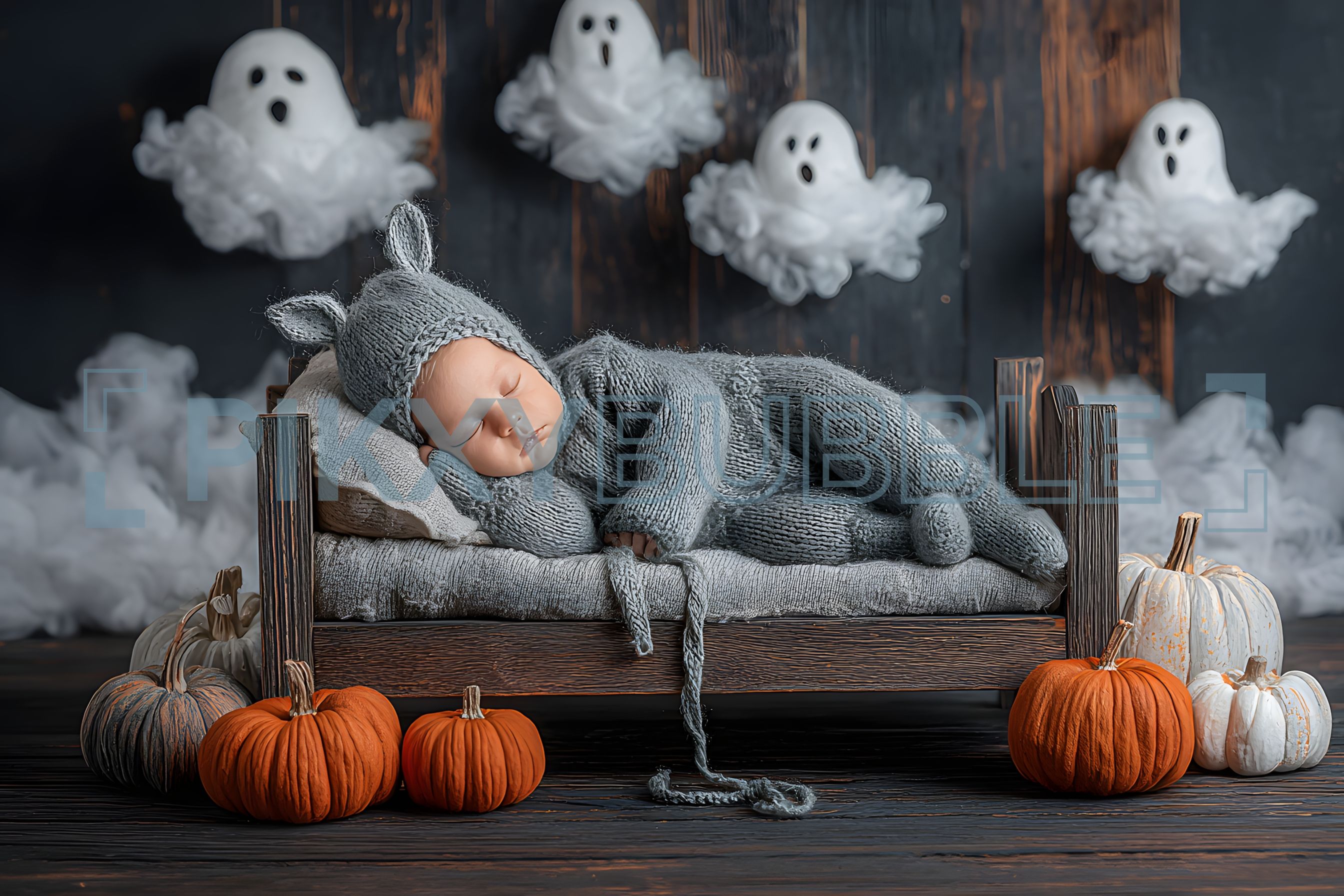 Un doux rêve d'Halloween pour les plus petits. Ce bébé endormi dans son costume mignon est entouré de