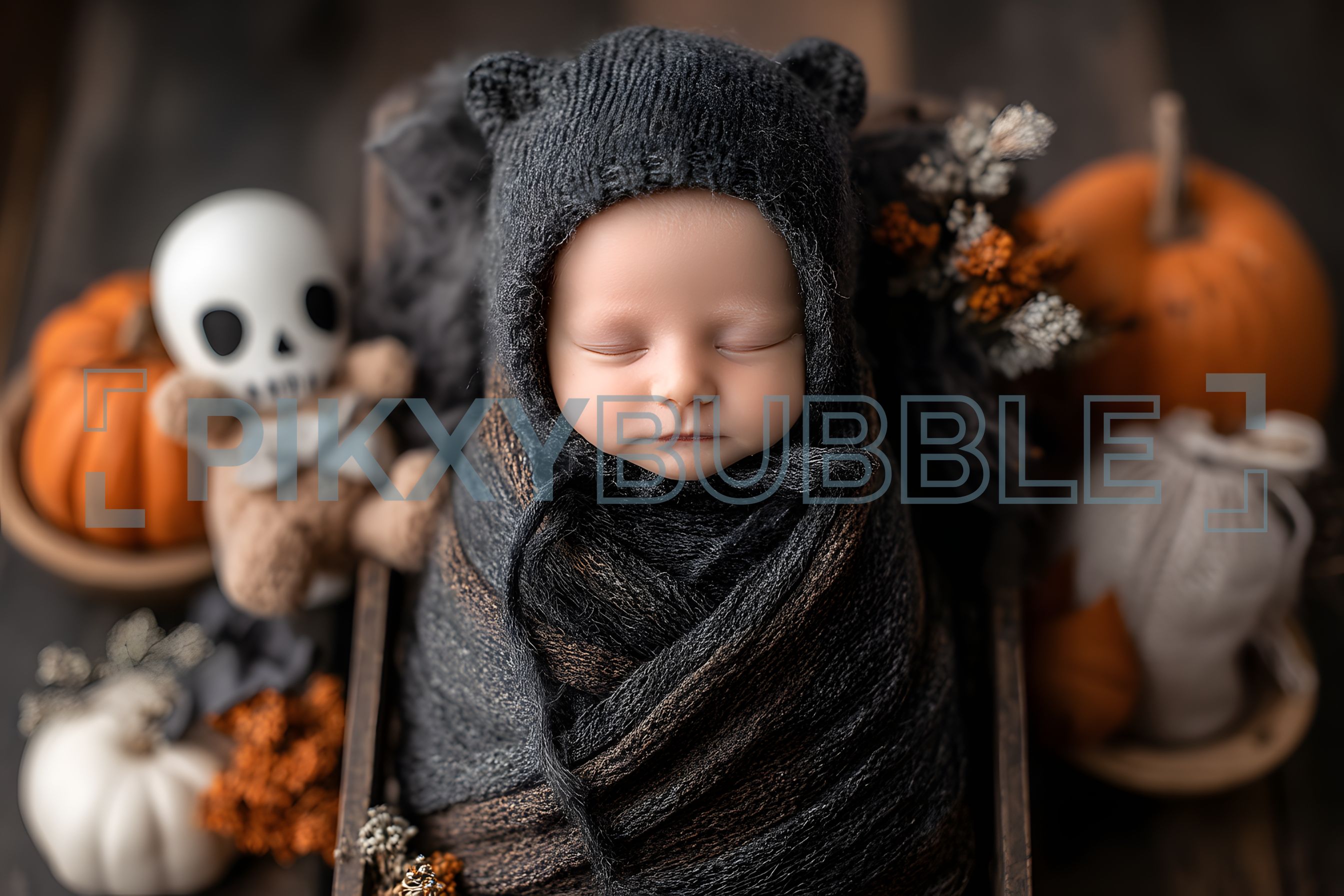 Découvrez un bébé adorably enveloppé dans un doux et chaud cocon. Ce magnifique décor d'automne met en avant :