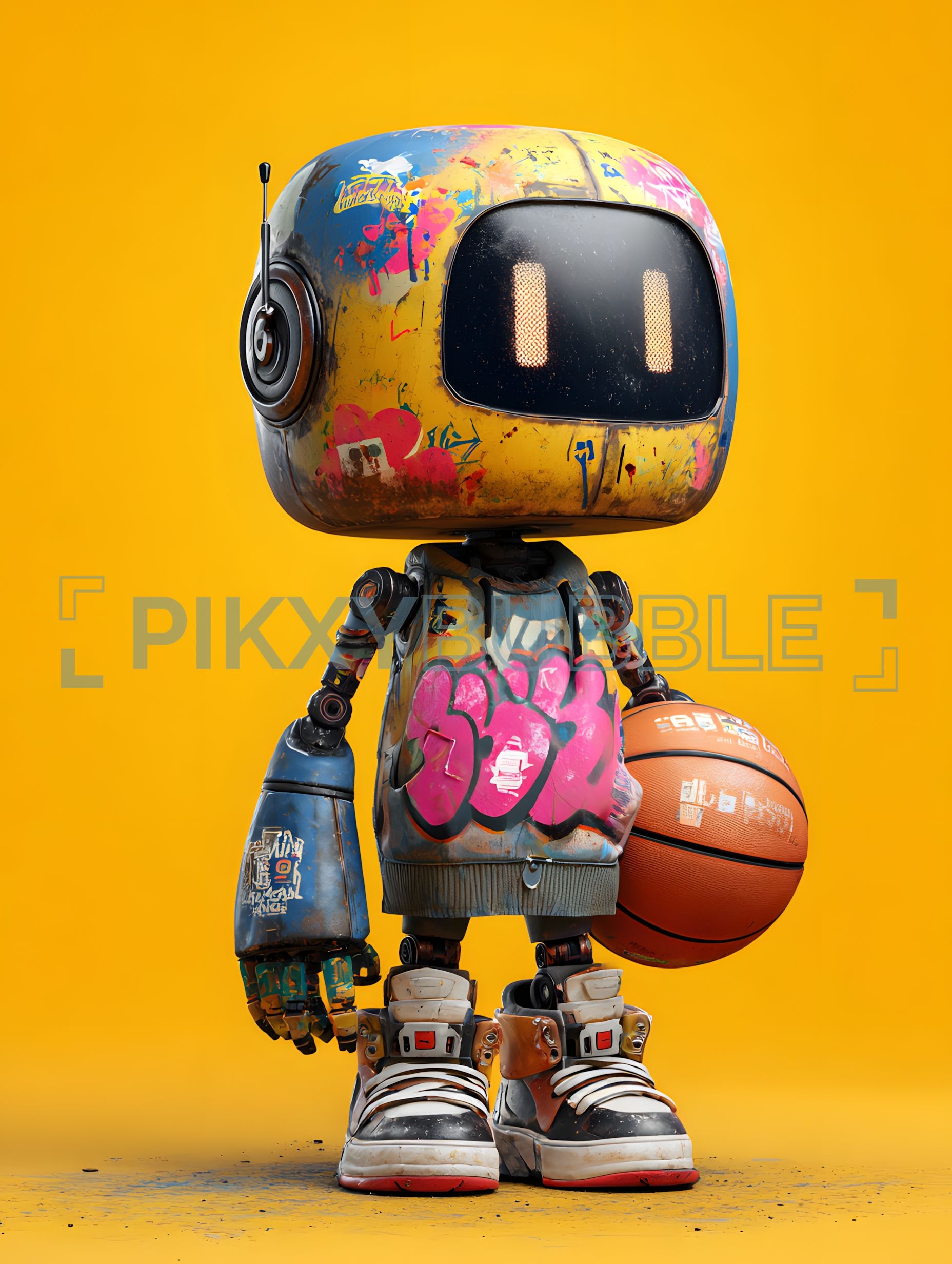 Bienvenue dans le monde des robots! Voici un robot stylé qui adore le basket.