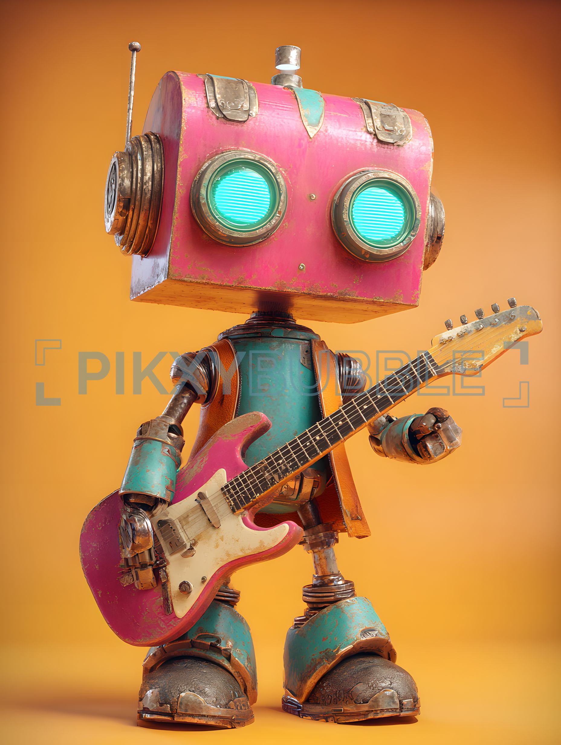 Ce robot enjoué joue de la guitare avec style. Voici quelques caractéristiques :