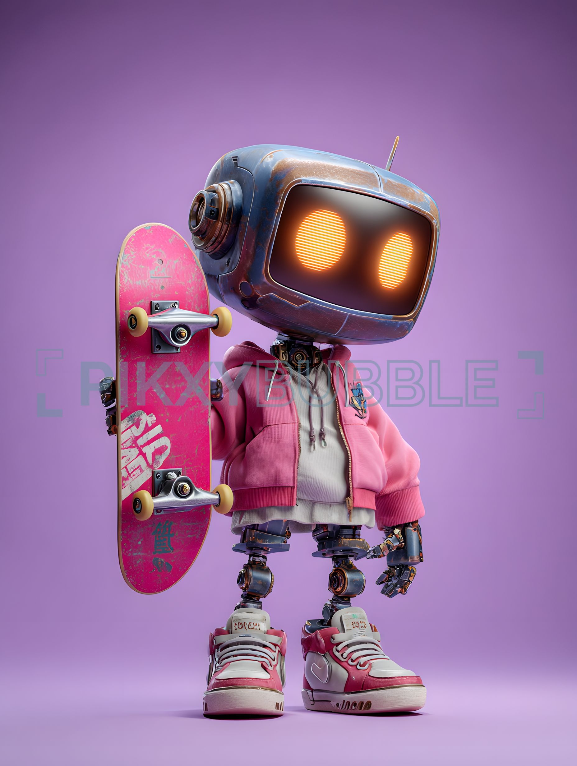 Un robot stylé prêt à skater, il arbore un look unique!