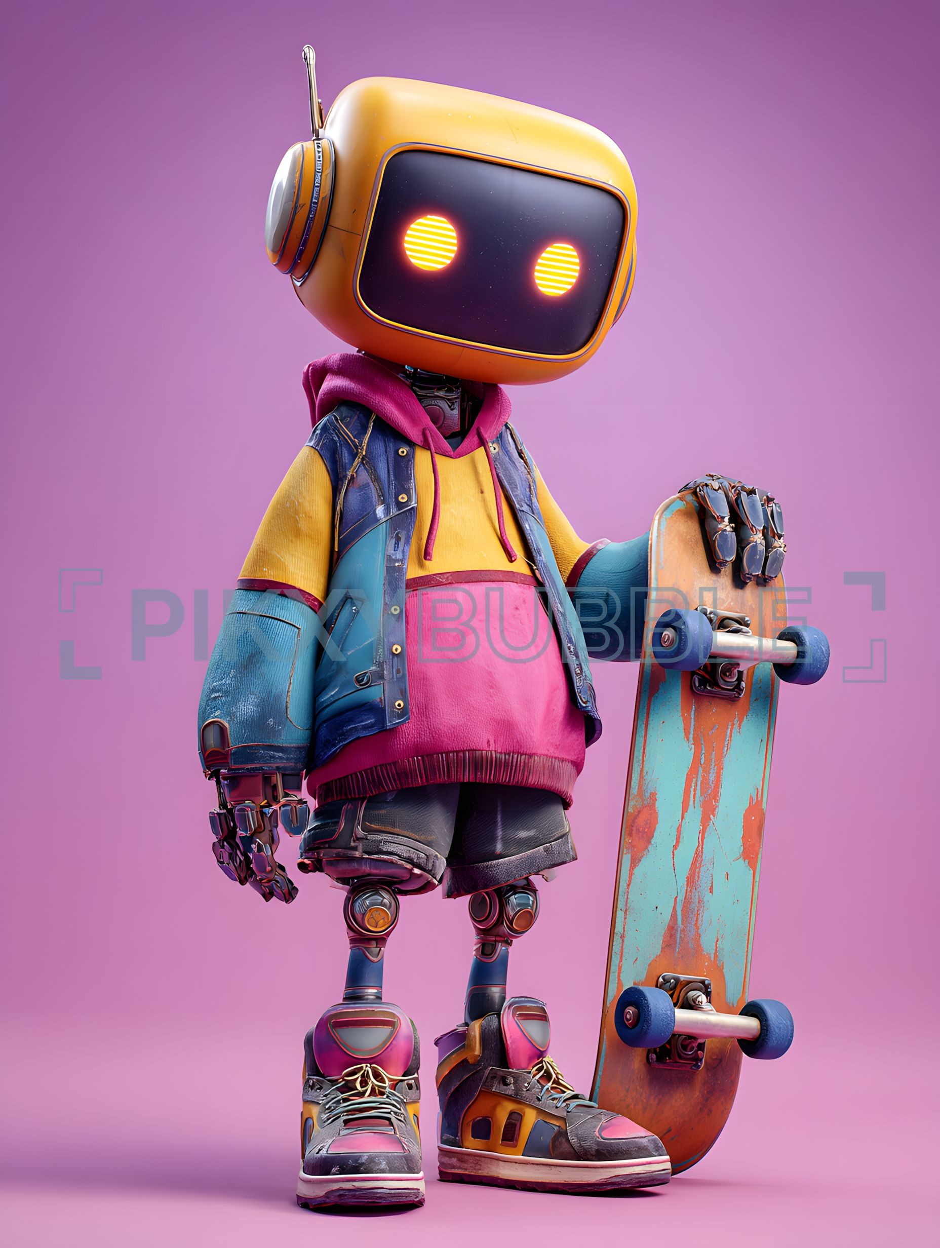 Ce robot skateur est un exemple d'innovation futuriste. Il combine des éléments de style moderne avec une personnalité ludique. Voici quelques caractéristiques :