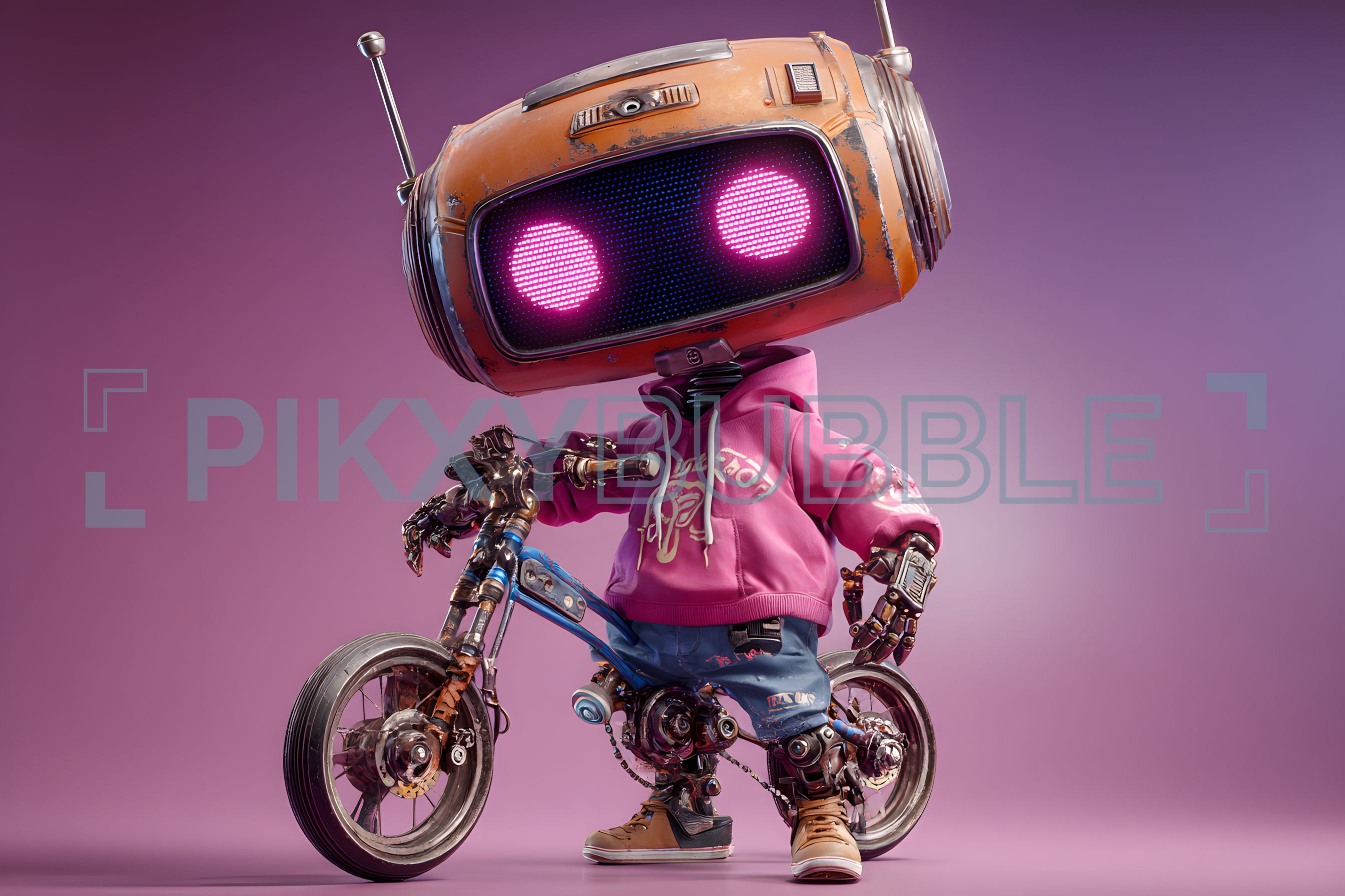 Description du personnage : Un robot cool avec une tête en forme de télévision.