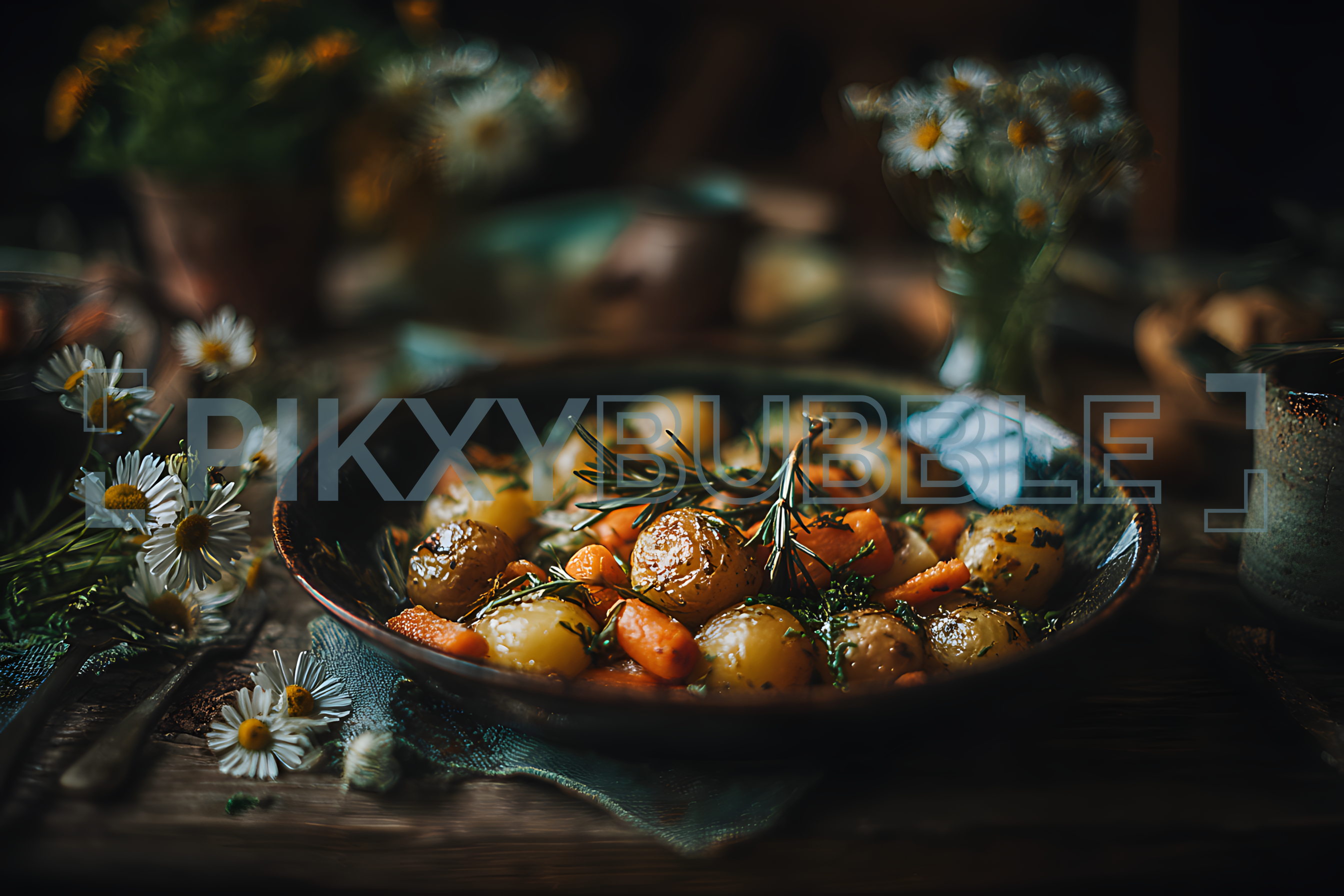 Dégustez un plat savoureux qui allie pommes de terre et carottes fraîches, rehaussé de romarin.