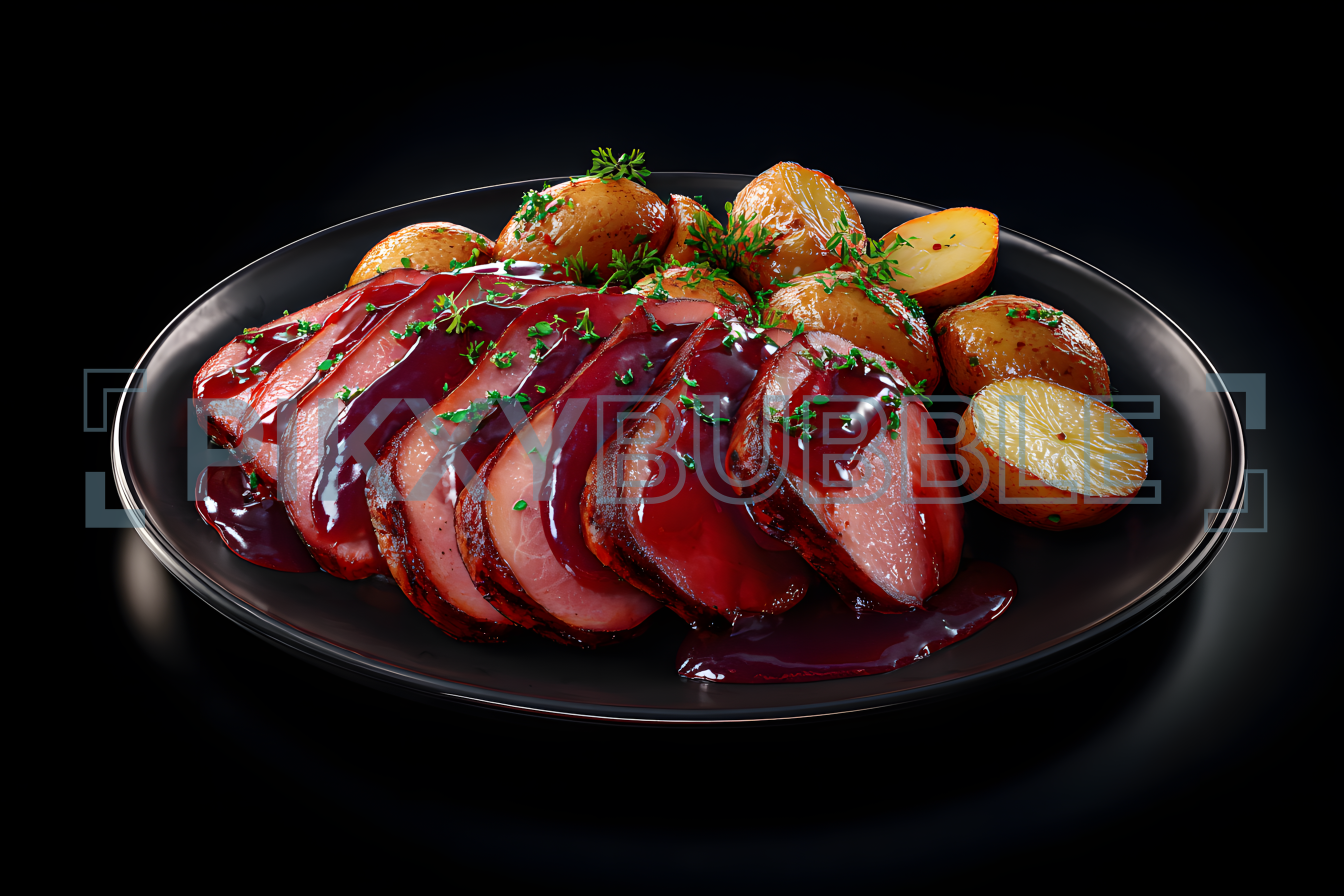 Délicieux plat de viande avec une sauce savoureuse. Accompagné de pommes de terre dorées, il est parfait pour toutes les occasions.