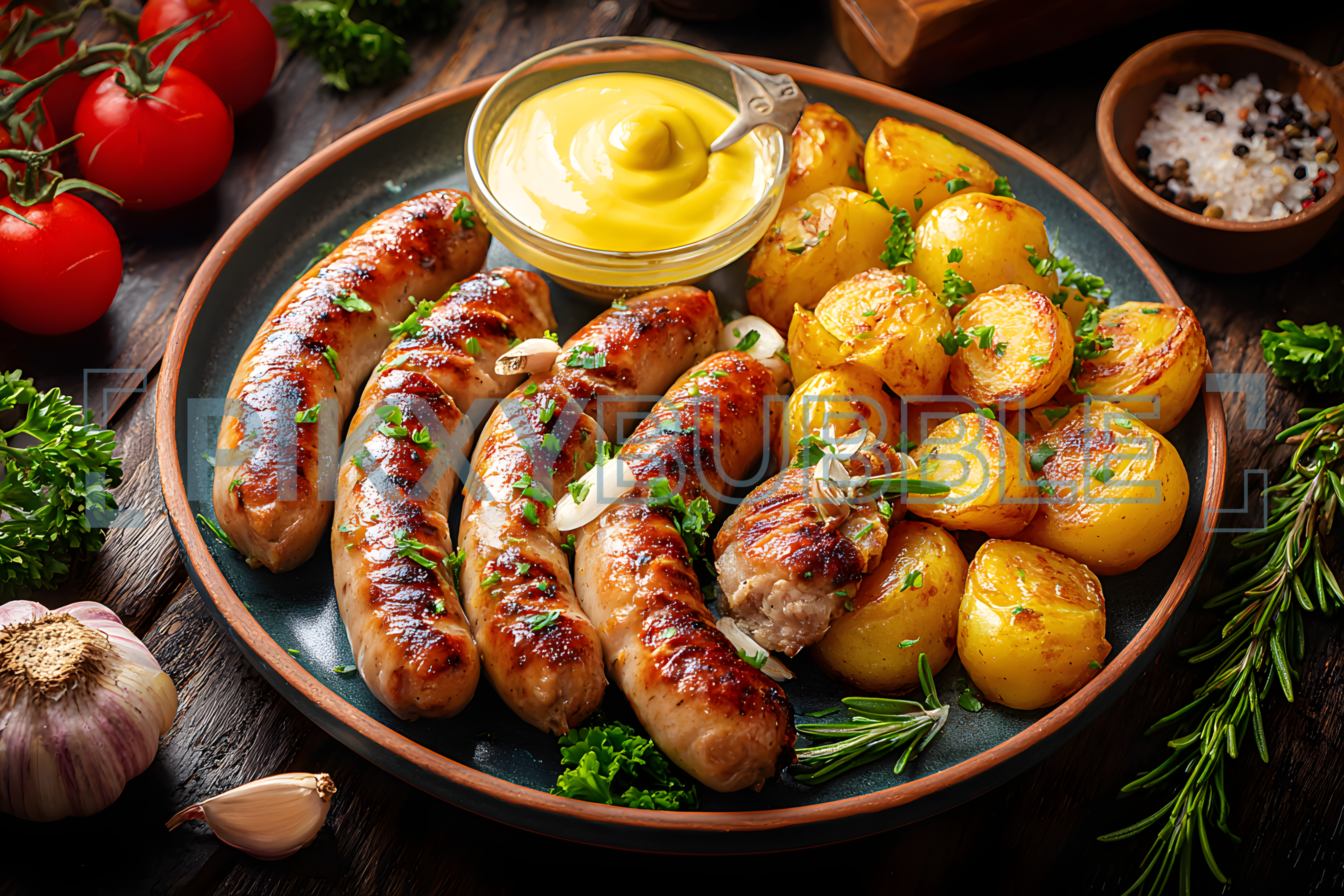 Découvrez notre plat savoureux : saucisses grillées accompagnées de pommes de terre rôties.