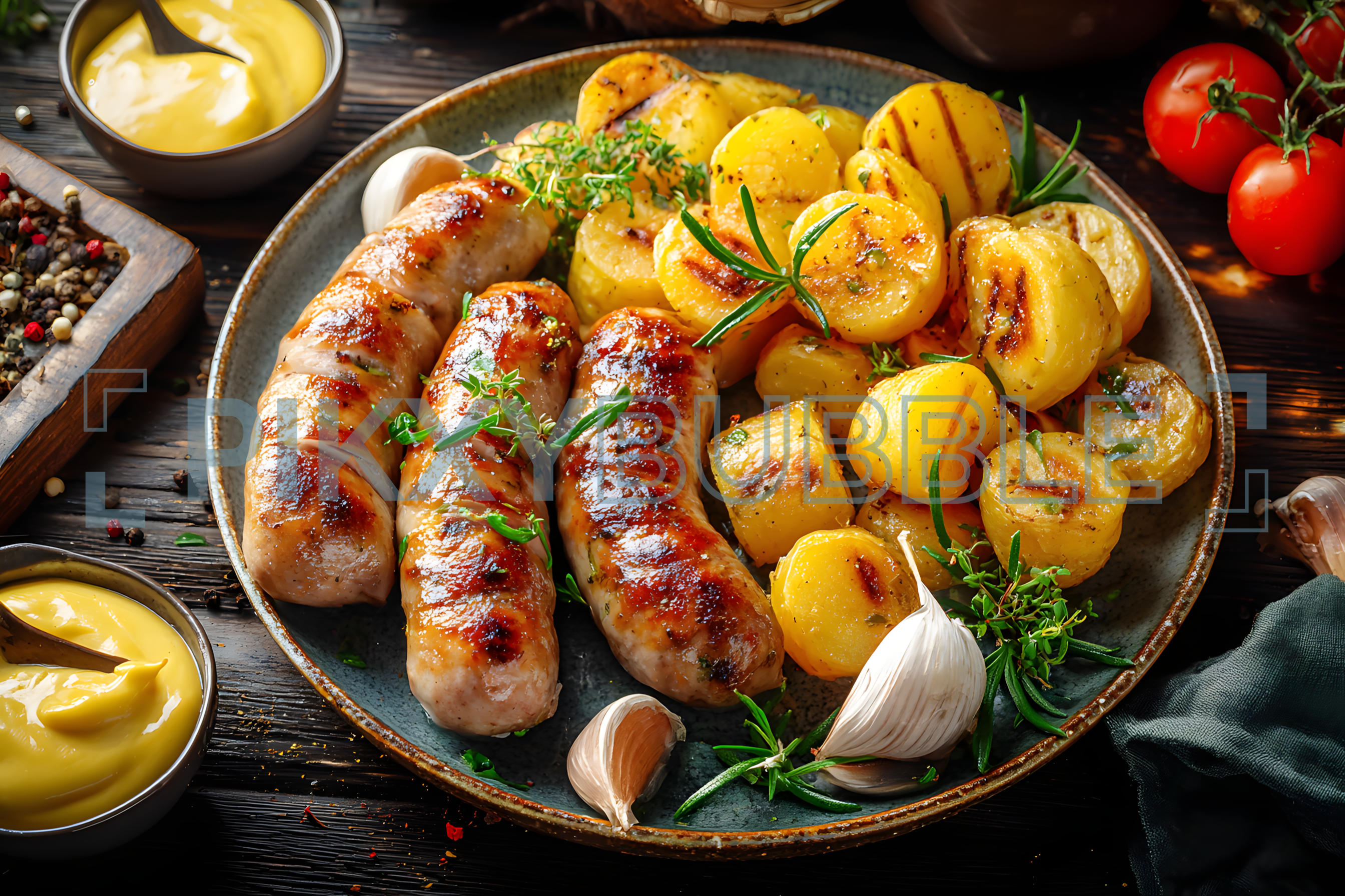 Découvrez une recette savoureuse de saucisses grillées avec des pommes de terre dorées.