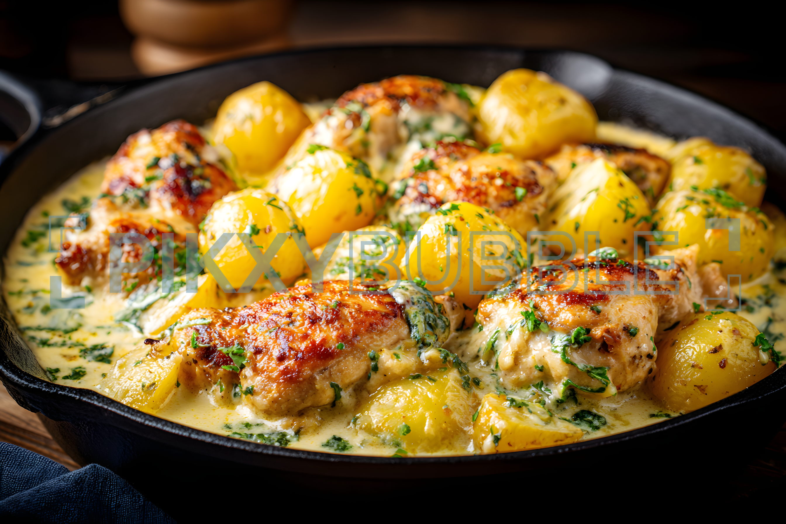 Découvrez une délicieuse recette de poulet crémeux aux pommes de terre. Un plat savoureux et facile à préparer.