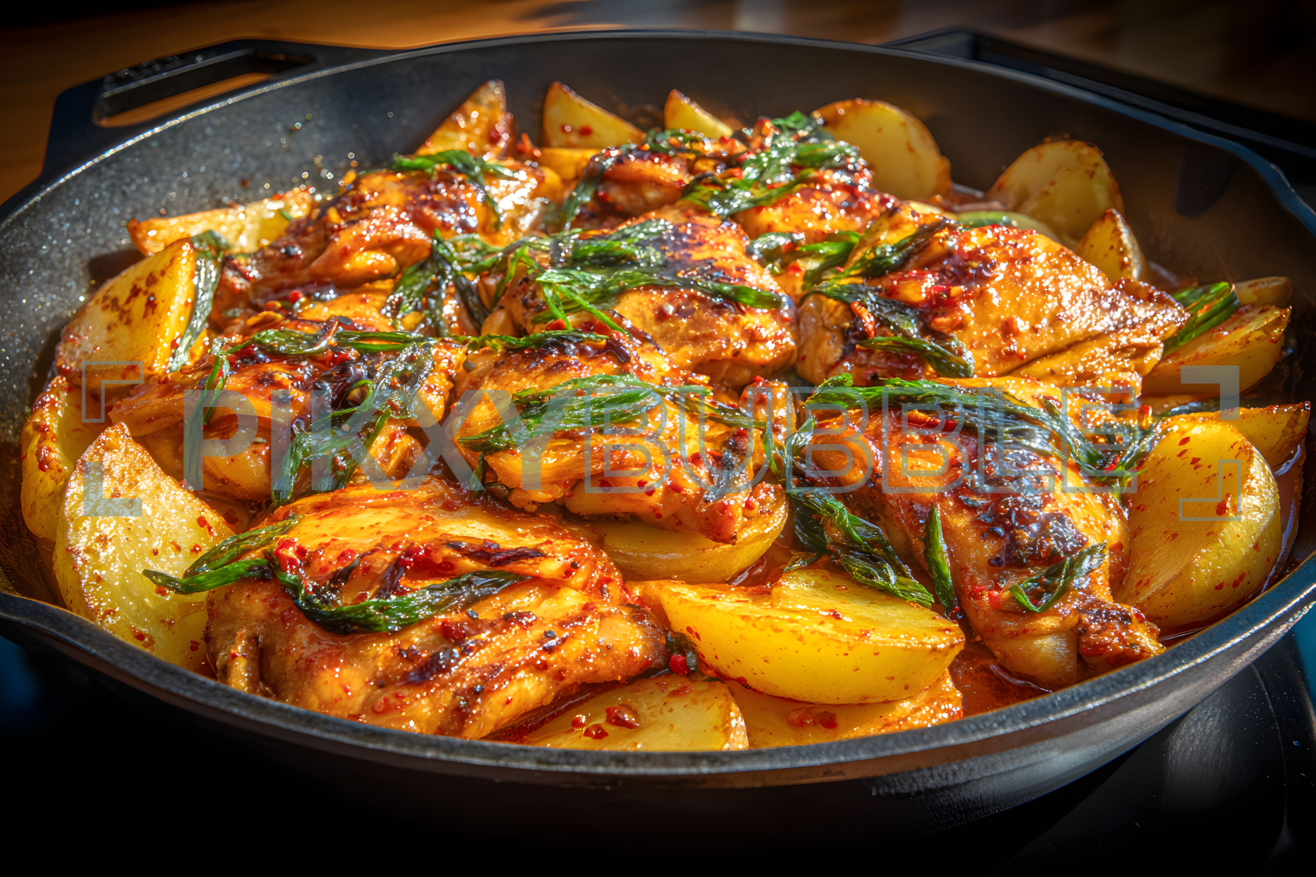 - Ingrédients : poulet, pommes de terre, épices