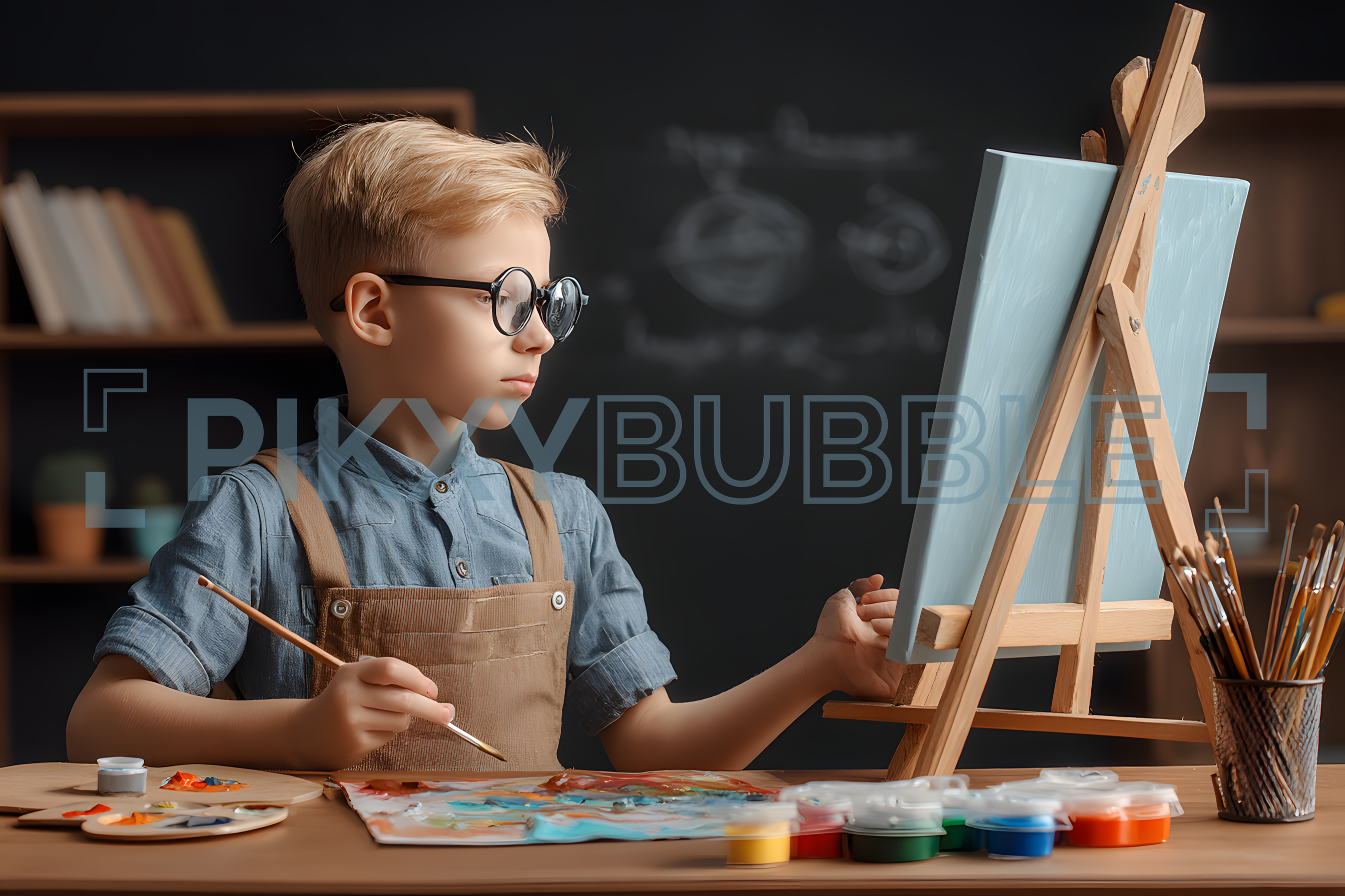 Ce jeune artiste explore sa créativité à travers la peinture. Regardez-le en pleine action, mélangeant des couleurs pour son chef-d'œuvre. Voici quelques points à noter :