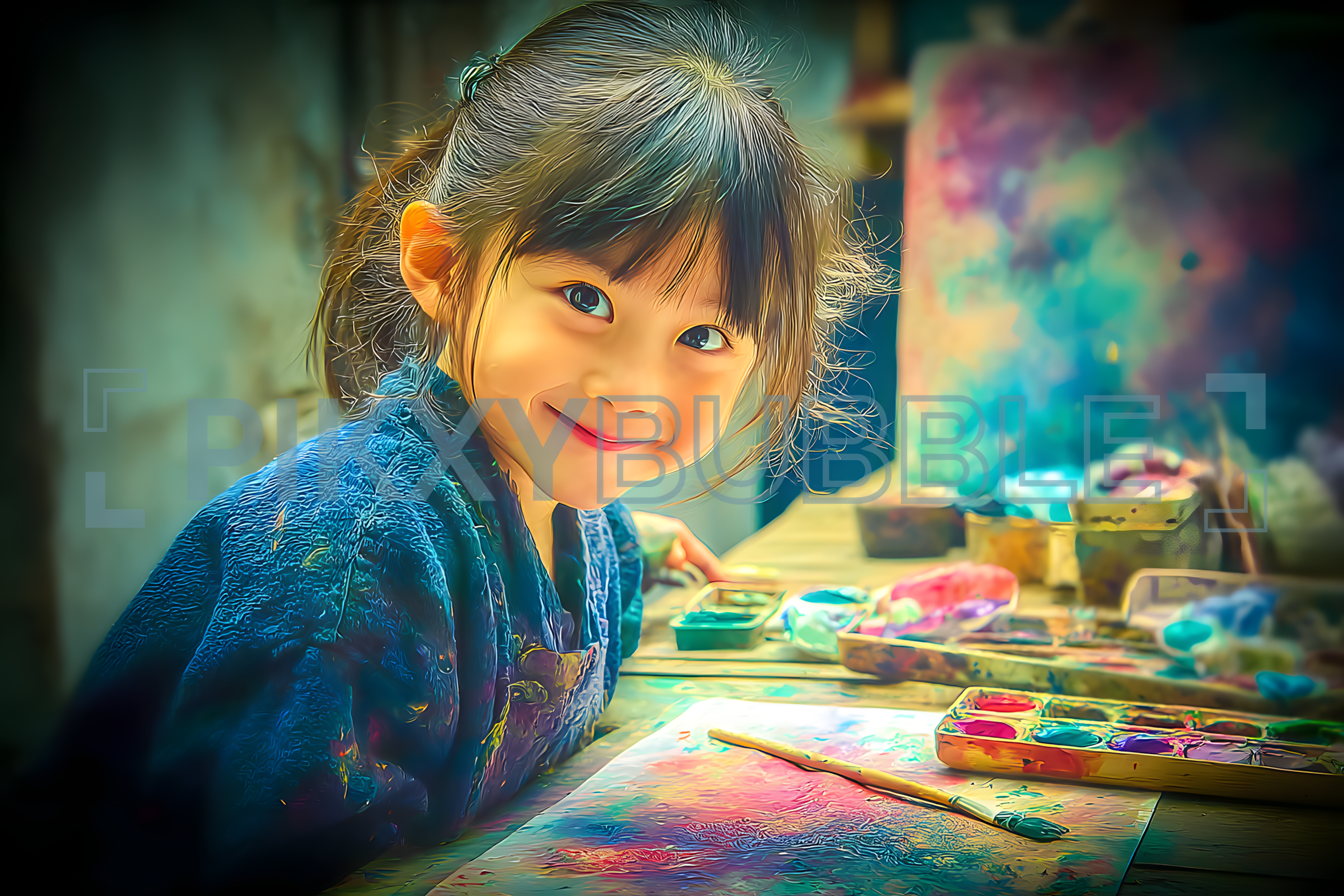 Une petite artiste passionnée par la peinture. Chaque coup de pinceau est une nouvelle aventure.