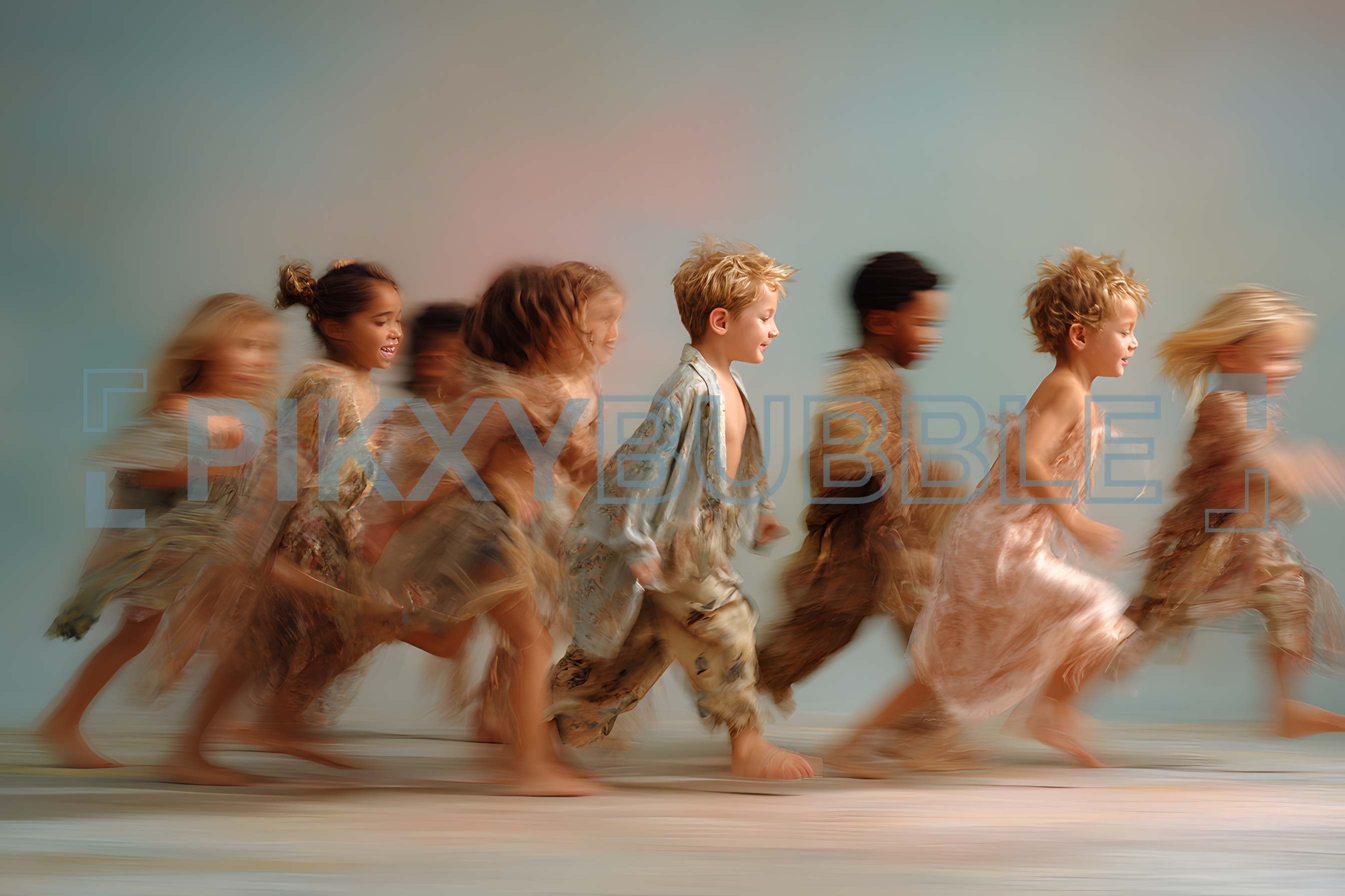 Célébrez la joie de l'enfance avec ce groupe d'enfants en mouvement. Ils incarnent l'esprit libre et la vitalité !