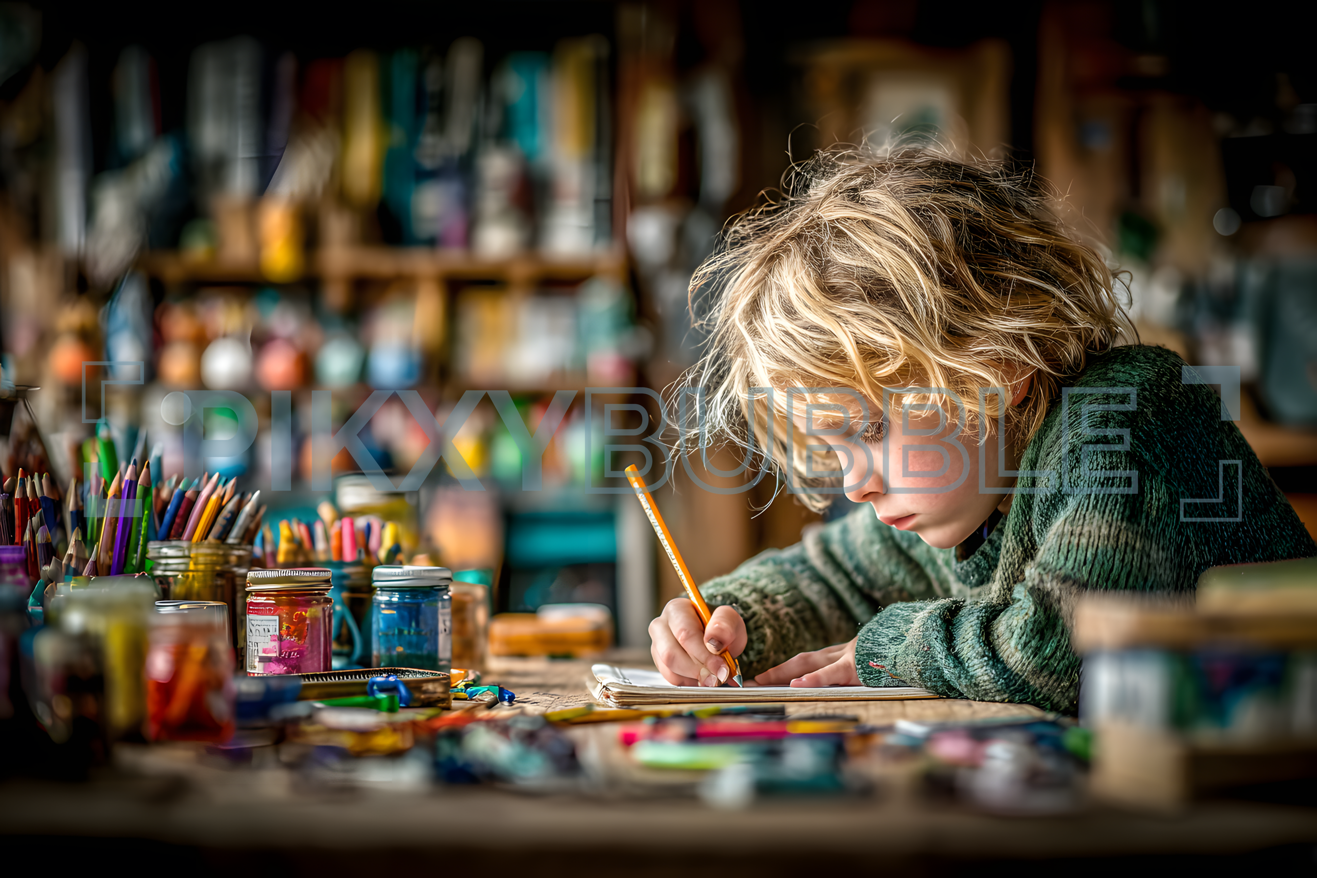 Dans cet atelier créatif, un jeune artiste explore sa créativité. Voici quelques éléments clés :