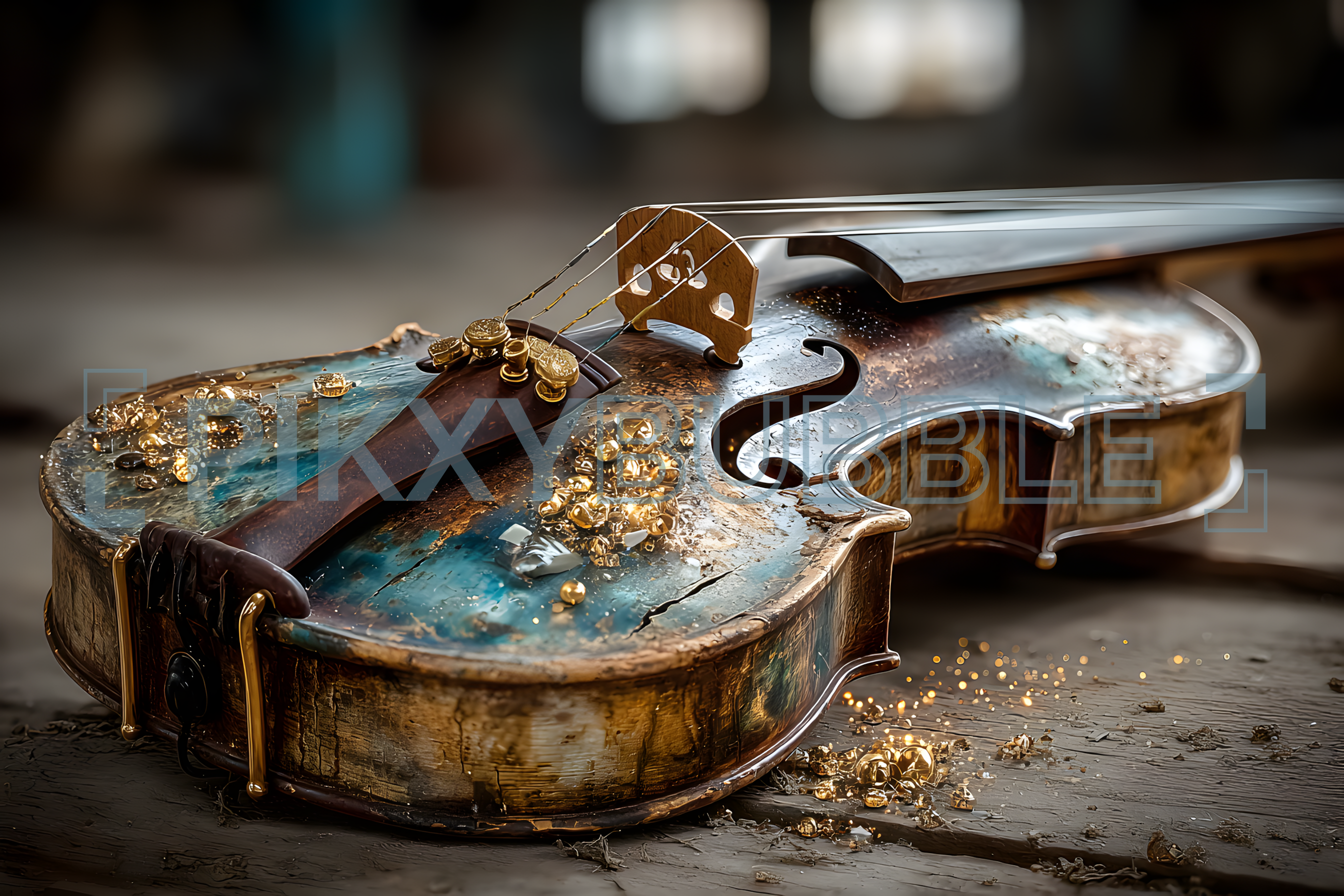 Découvrez la beauté d'un violon unique, orné de détails scintillants. Ce chef-d'œuvre artisanal évoque des