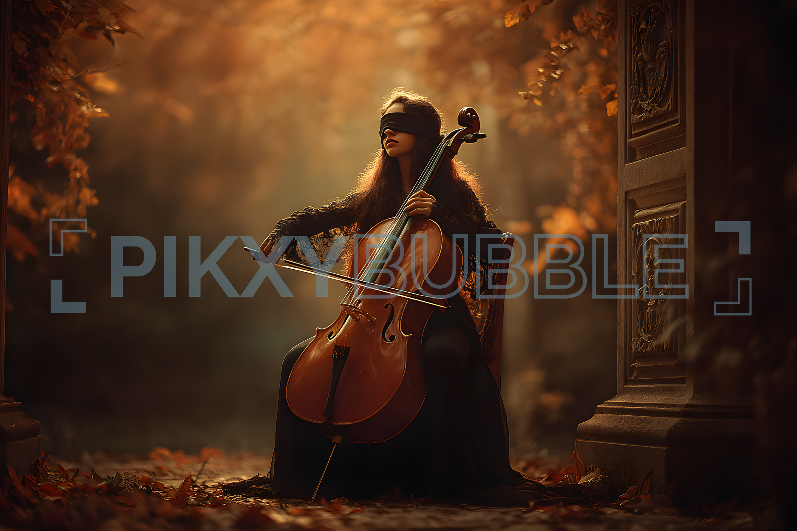 Découvrez les envoûtantes mélodies d'une violoncelliste aveugle jouant au cœur d'une forêt automnale.