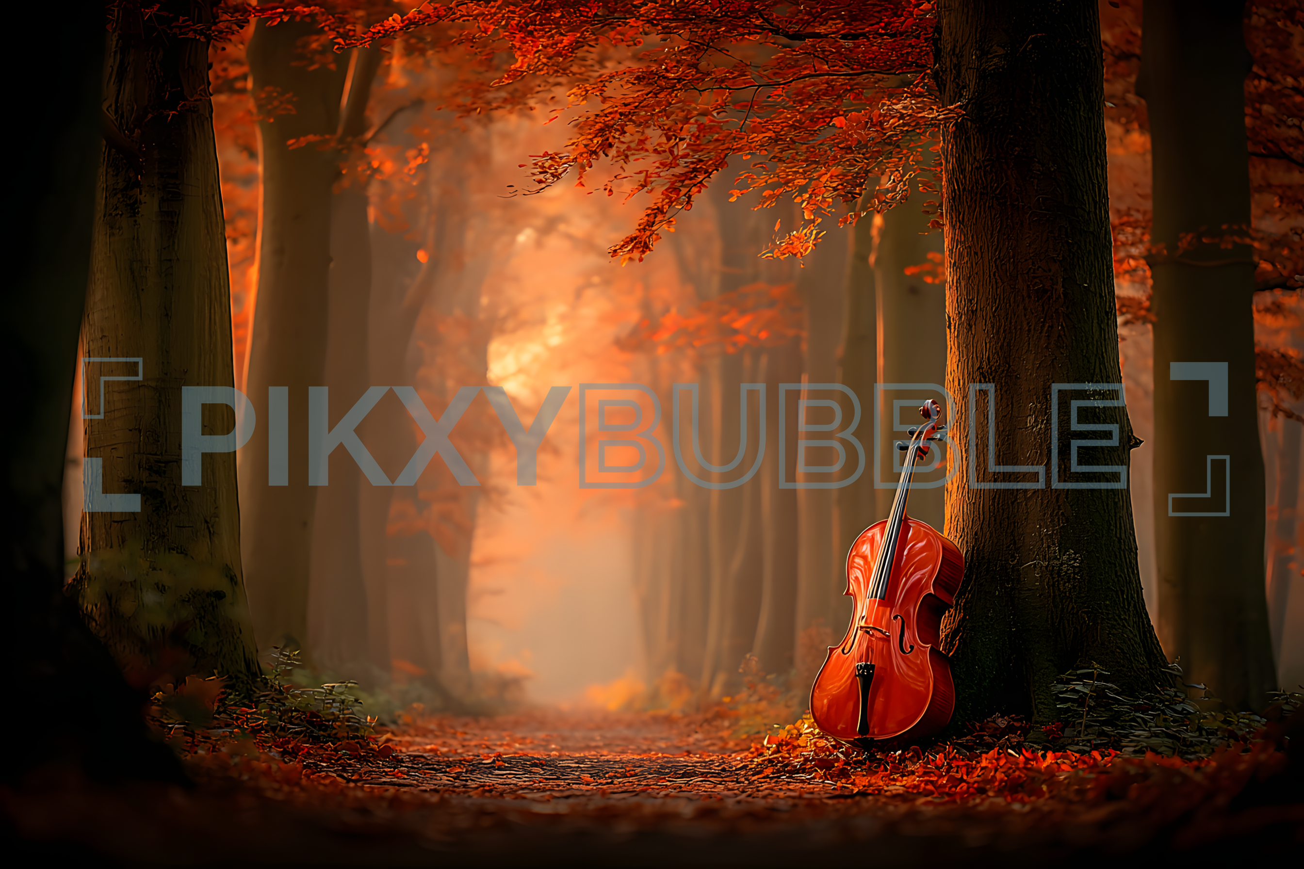 Forêt enchantée où la mélodie de la nature se mêle à la mélancolie du violoncelle. Admirez les feuilles