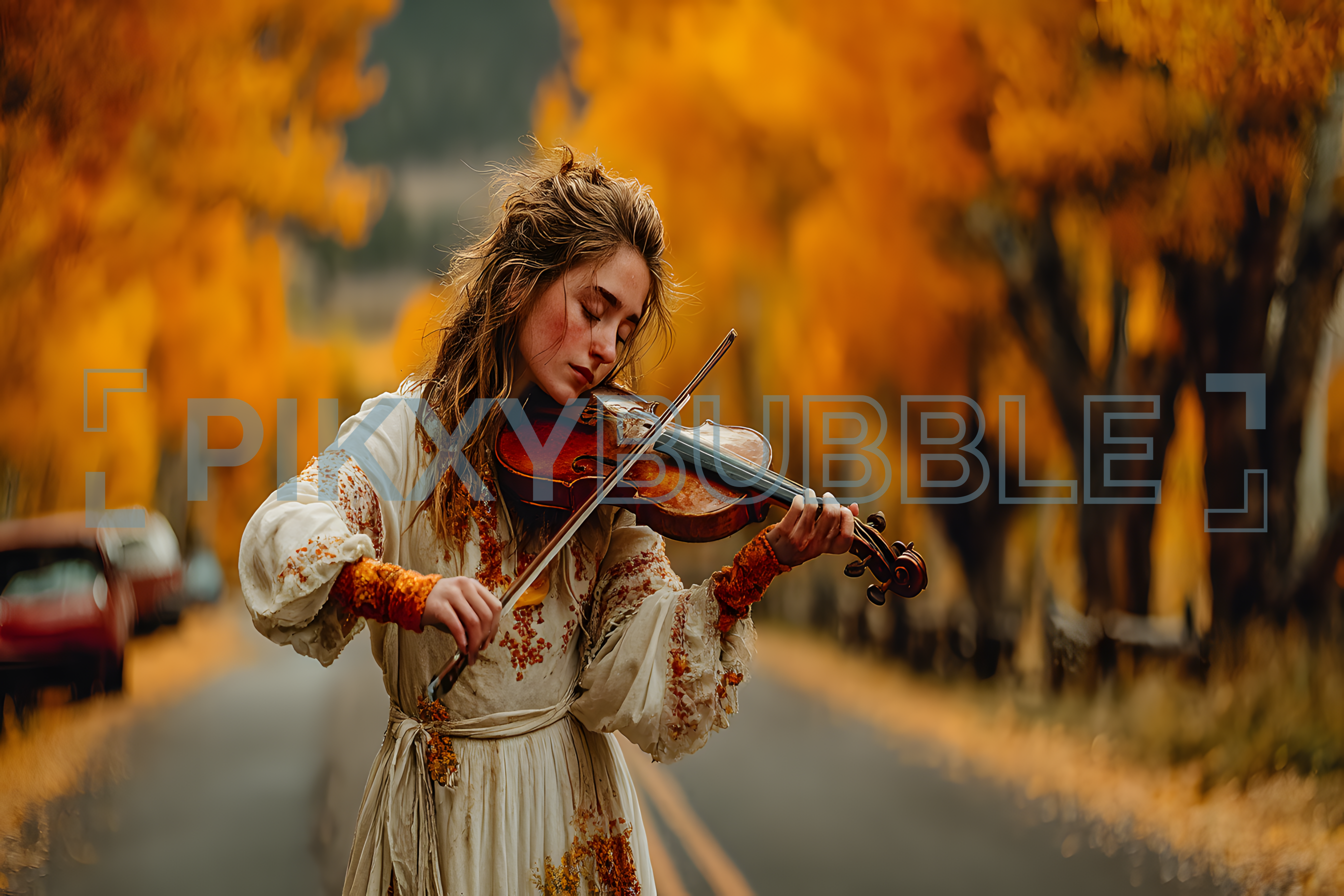 Un moment musical magique en plein air, entouré de la beauté de l'automne.