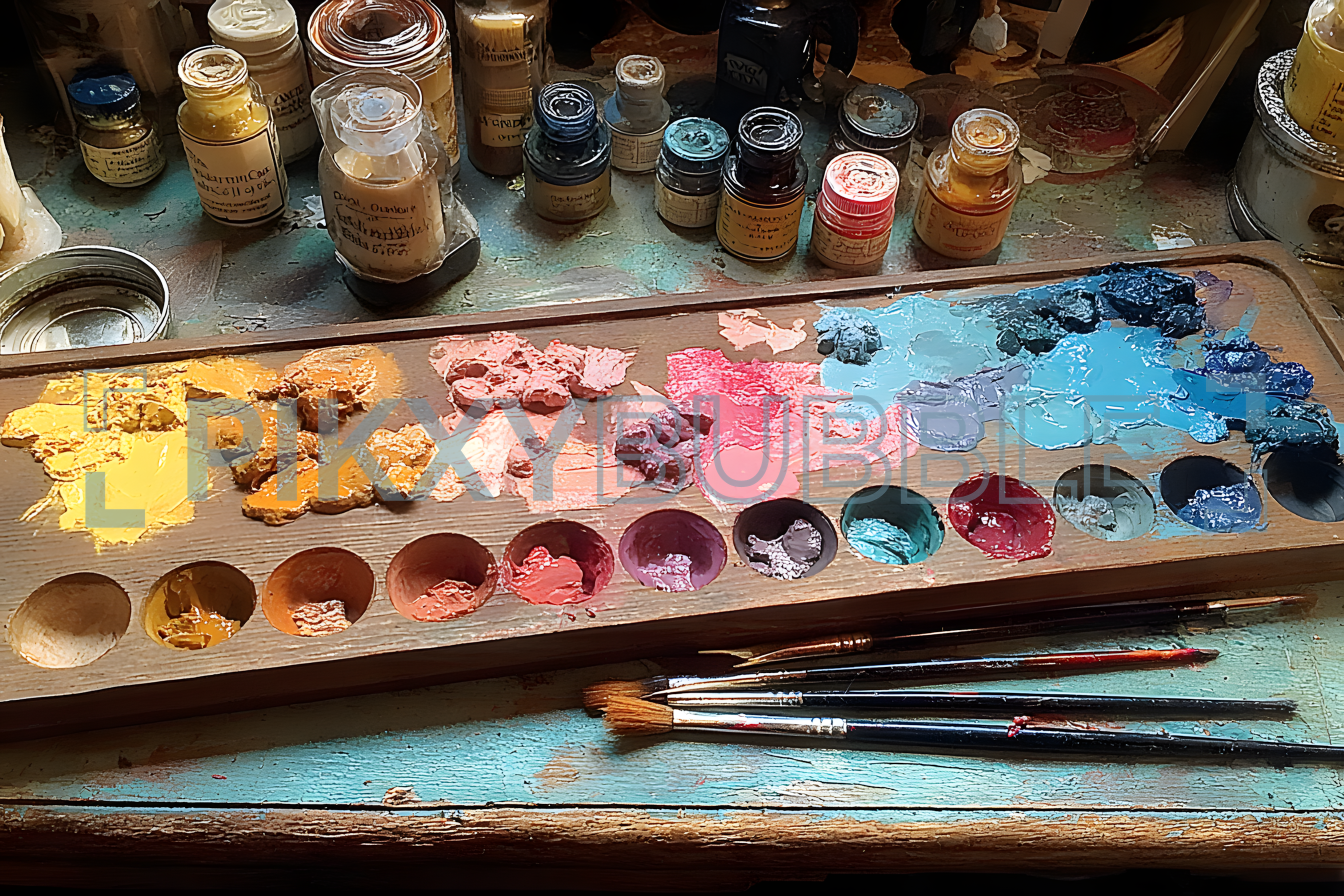 Palette de couleurs utilisée pour la peinture.