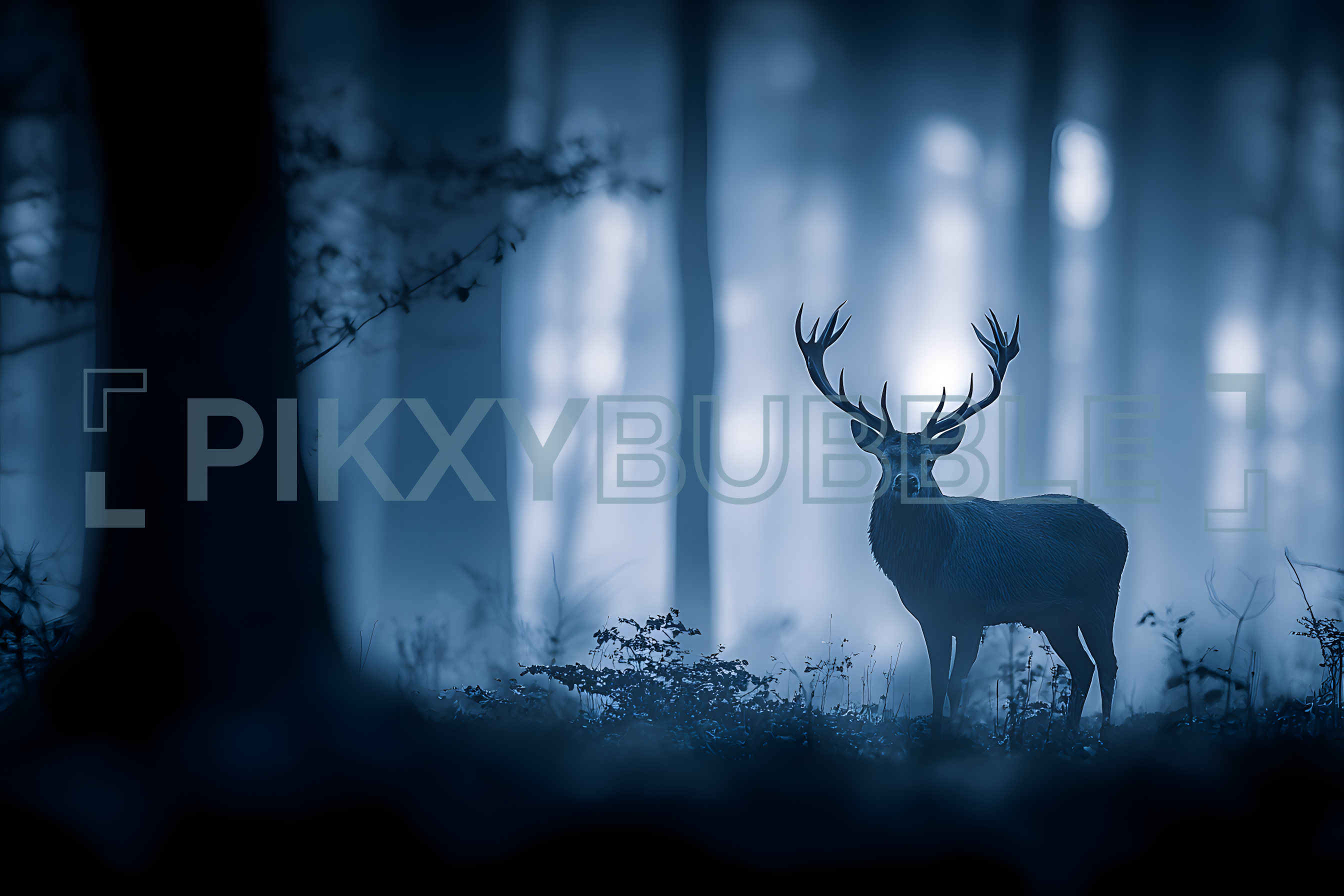 Découvrez la beauté de la nature à travers cette magnifique image de cerf. Ce majestueux animal se tient dans une forêt brumeuse, capturant l'essence de la faune sauvage. Les couleurs froides et l'atmosphère mystérieuse créent une ambiance unique.
