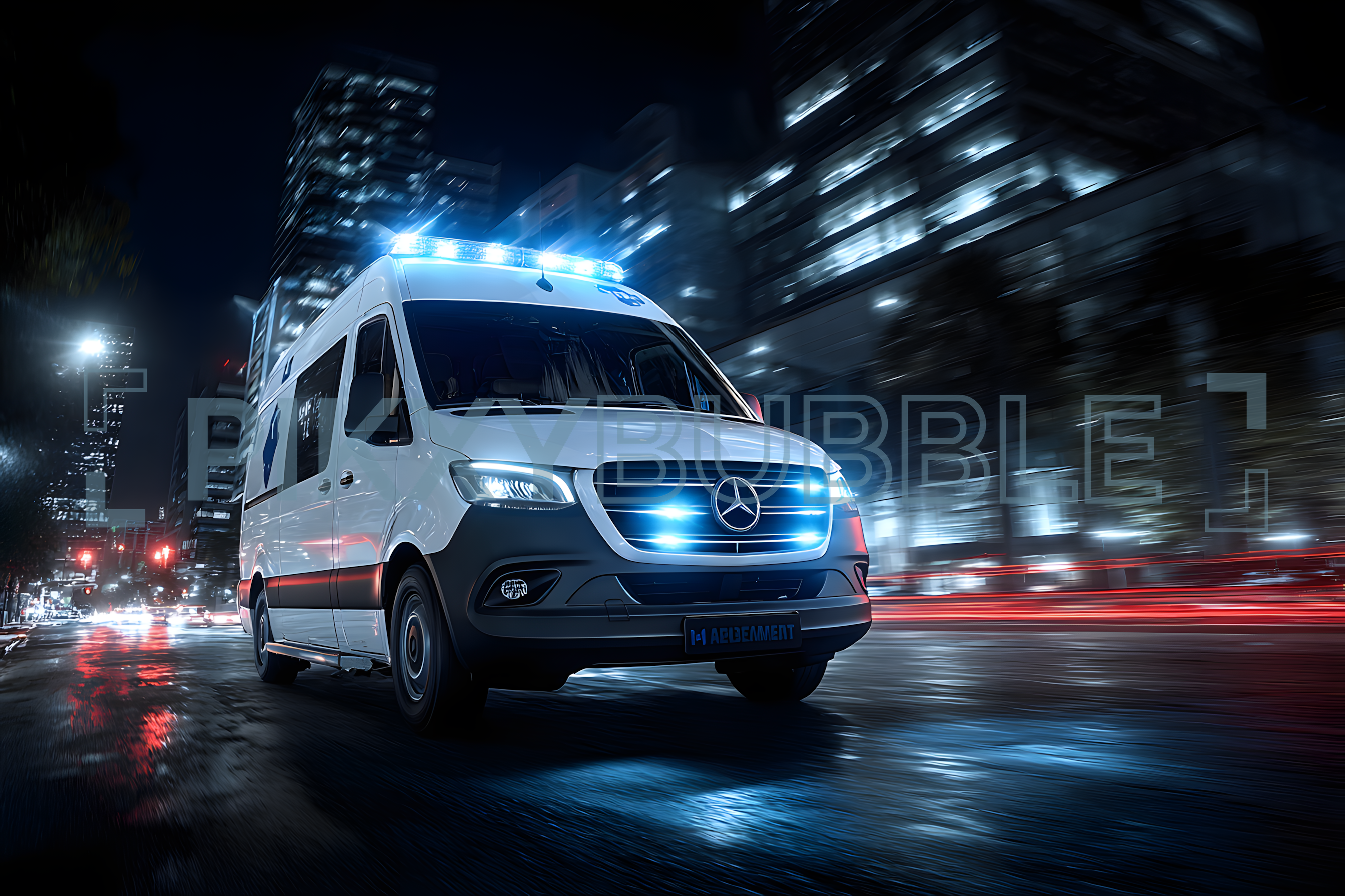 Ambulance moderne en pleine nuit.