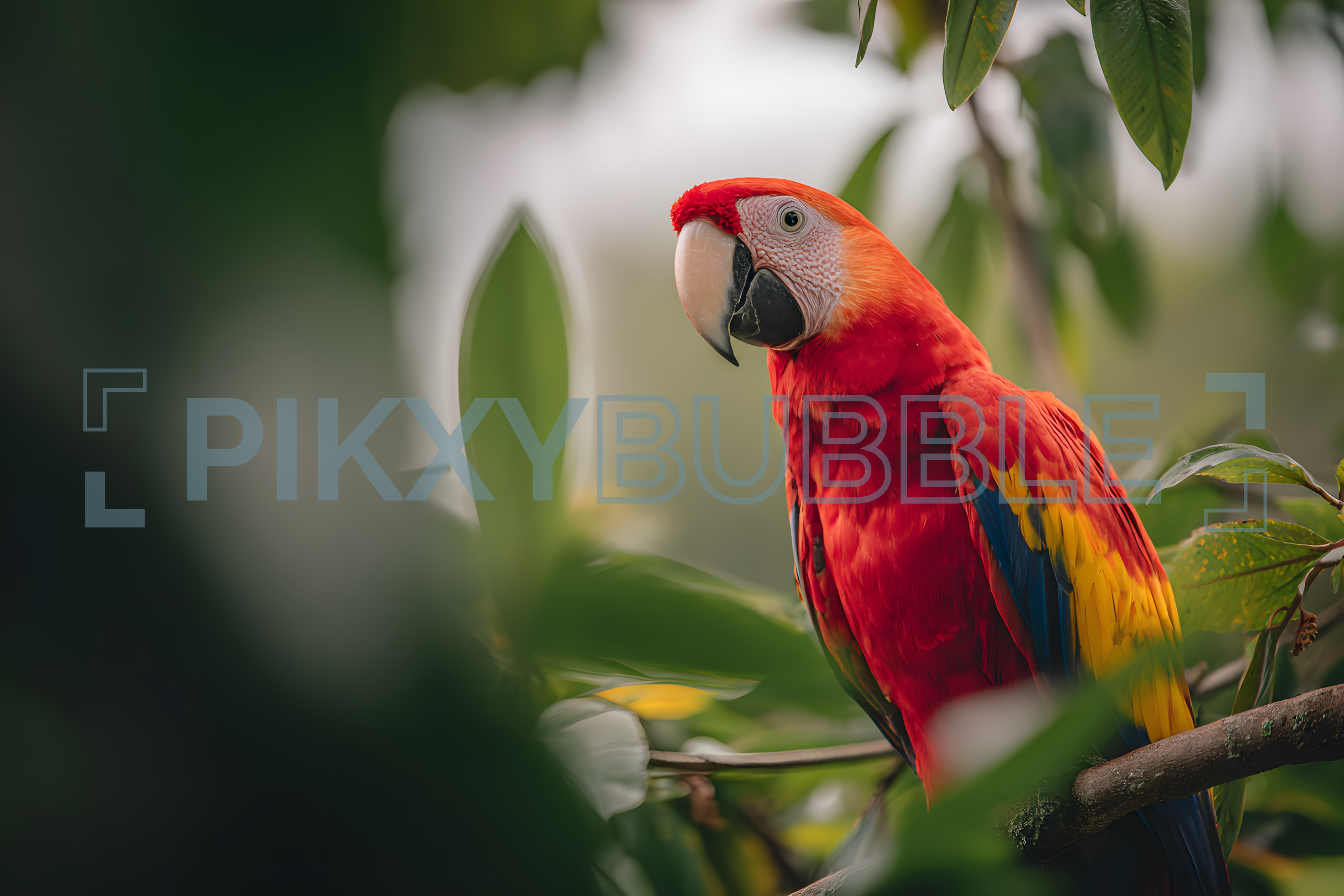 Ce magnifique ara se distingue par ses couleurs vives et sa personnalité charismatique.