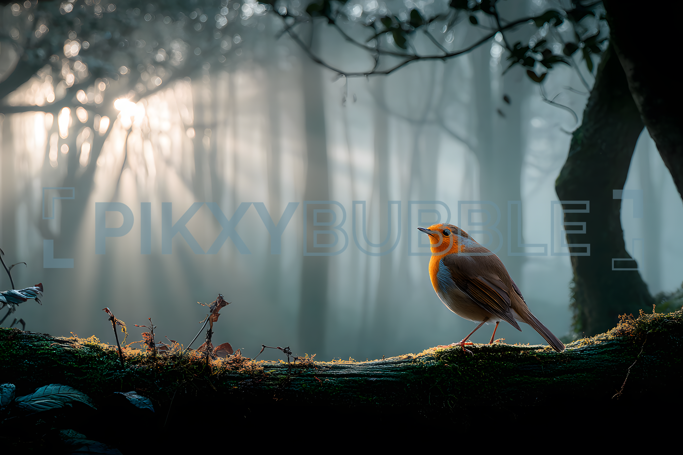Un bel oiseau chanteur qui se perche sur une branche dans une forêt brumeuse. Admirez la beauté de la nature à travers ces points :
