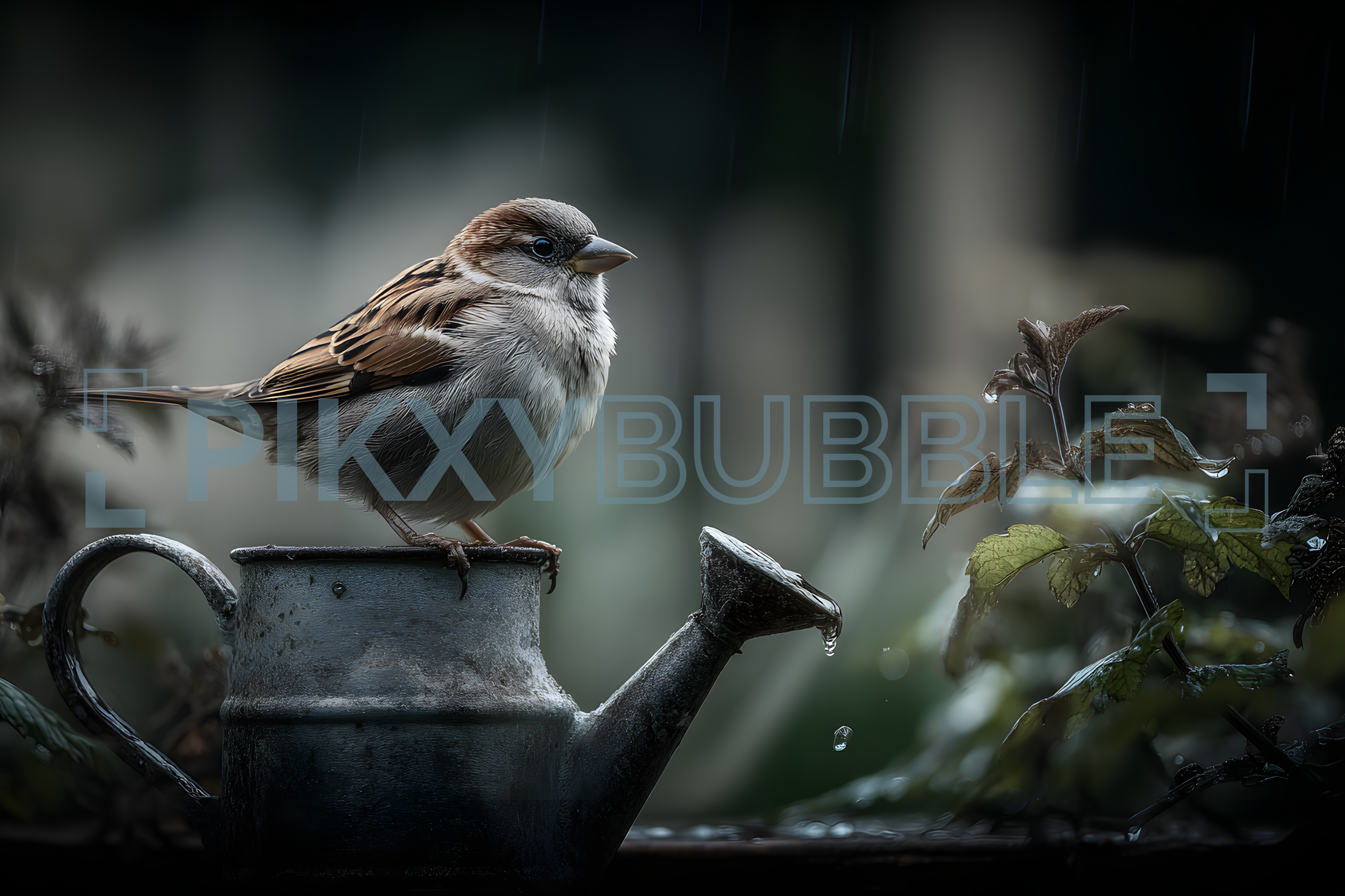 Un petit oiseau sur un arrosoir. Ce spectacle naturel est magnifique à observer.