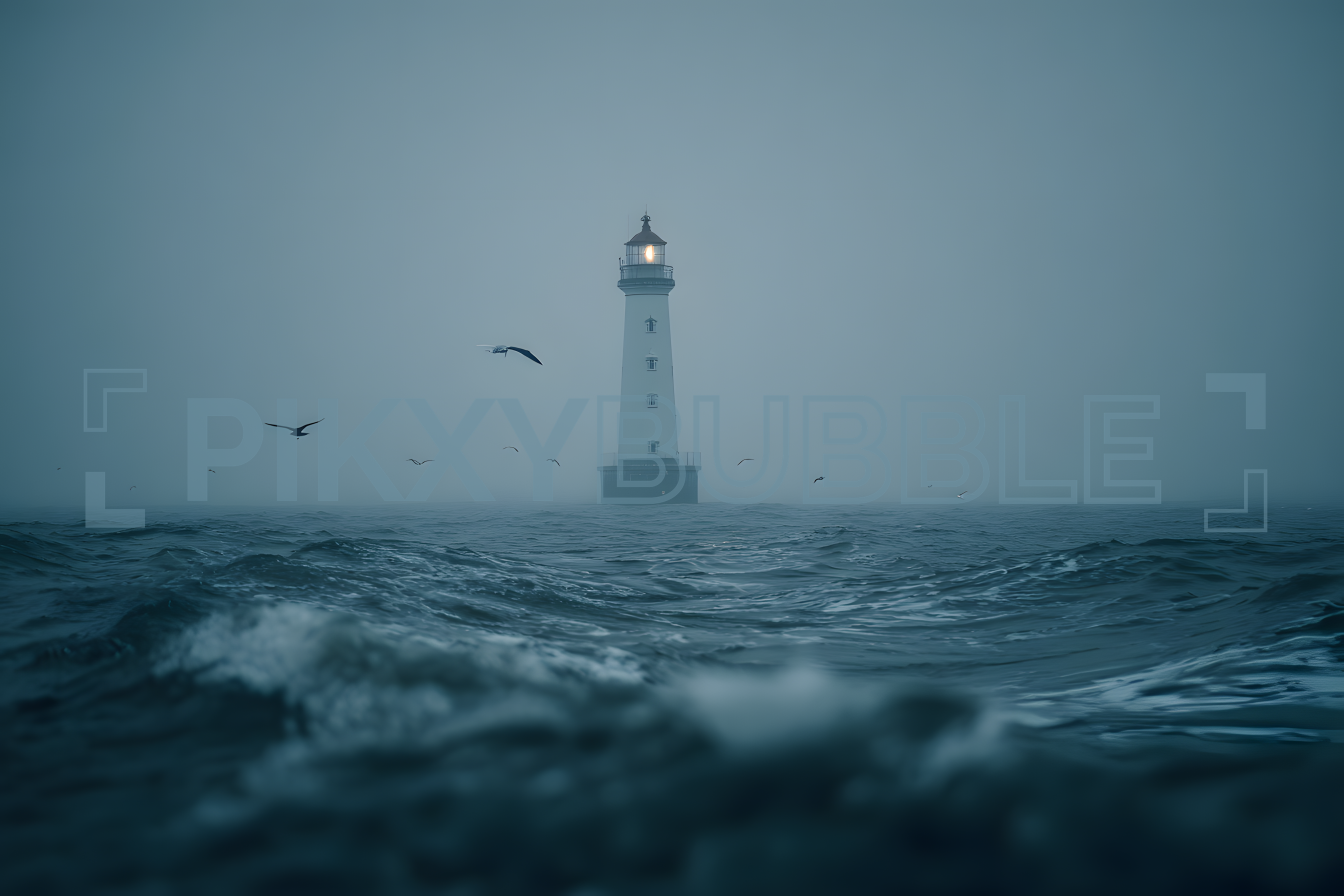 Ce phare majestueux se dresse dans la brume, témoin des marins. Éléments clés :