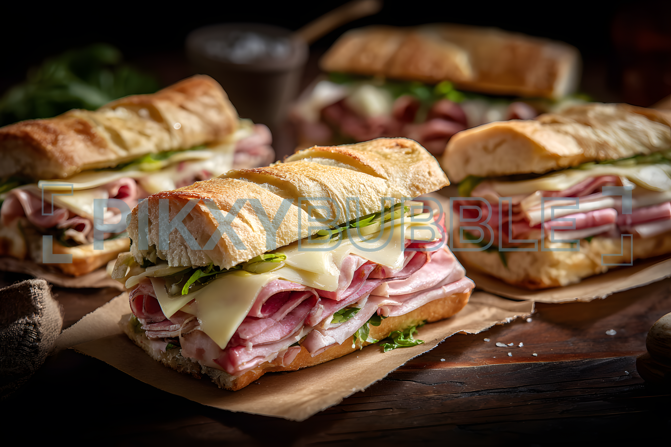 Découvrez notre délicieux sandwich, composé de viande froide, de fromage et de légumes frais.