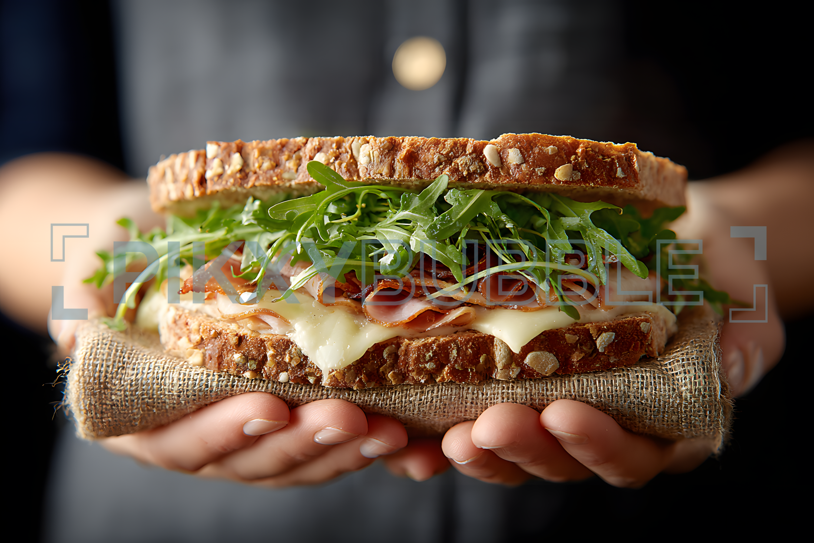 Découvrez notre délicieux sandwich qui se compose de pain complet, de jambon, de fromage et de roquette. Voici ce que vous y trouverez :