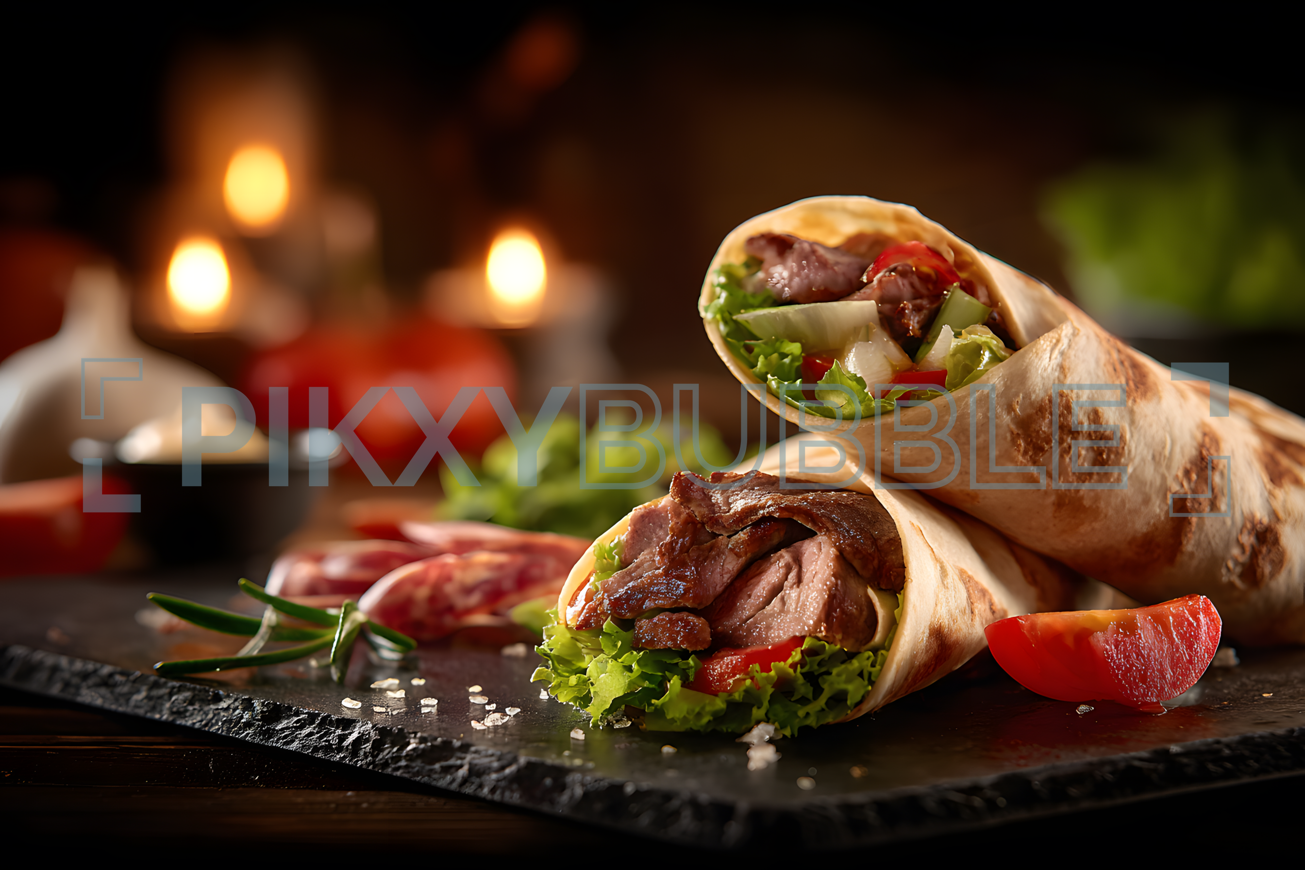 Découvrez notre savoureux wrap fait maison, garni de viande tendre et de légumes frais.