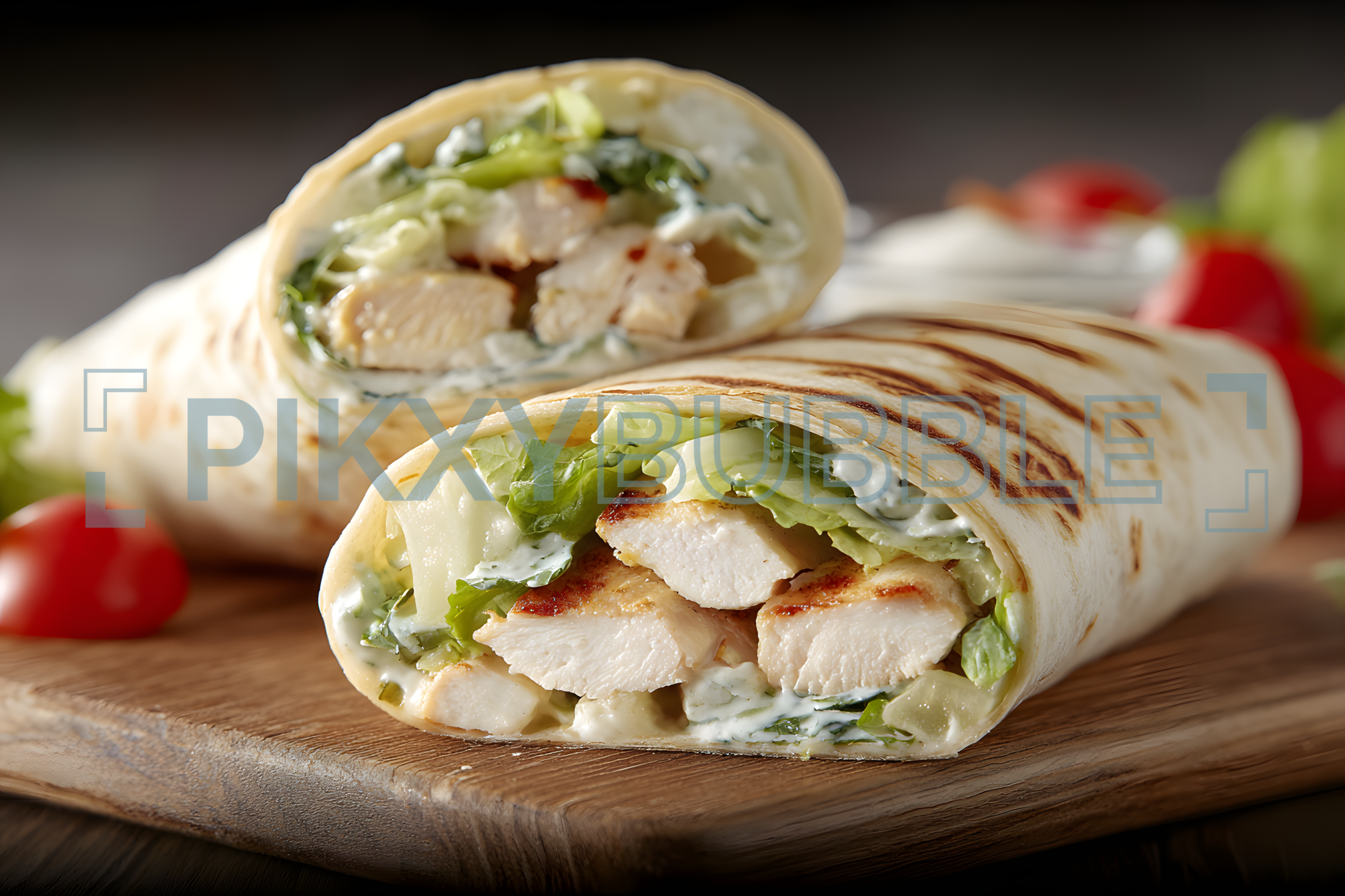 Délicieux wraps au poulet avec une garniture fraîche et savoureuse. Parfait pour un déjeuner rapide!